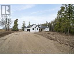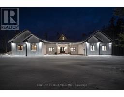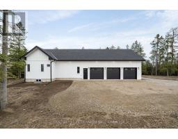 When Modern Farm House is touched with elegance and sophistication you are presented with 5450 Fifth Line. This nearly 3000 sq ft custom bungalow is crafted to ensure the exterior meets the interior. Relaxed country warmth, with clean lines, soaring ceilings and thoughtful finishes throughout. You'll be captivated by the 1300 sq foot great room with 21' cathedral ceiling plus living, dining and kitchen all blended in harmony. The floor to ceiling fireplace focal point, is wrapped with built-ins and a hemlock barn beam mantle. The white oak engineered hardwood in soft neutral tones, flows throughout this masterpiece. The kitchen features a 11' island with seating for 5 and an under counter farm house sink showing off the quartz countertop. High end 6 burner gas 4' stove/oven combo with thoughtfully placed pull out pantry drawers and a functional pot filler. Just off the entry from the 3-car garage is a generous mudroom, laundry and powder room to keep daily life organized. The primary suite is tucked away, offering a quiet retreat with views of the trees and a walkout to the 65' wrap around deck. Get ready for the ensuite with 2 partner vanities, freestanding soaker tub and double walkway into the natural light shower. Then meander into the huge walk-in closet all ready for your inspiration. Additional bedrooms are thoughtfully separated with their own Jack and Jill bathroom, and the 4th with its own ensuite, giving it so many uses. The basement with its soaring 9' ceilings and large windows is a canvas ready for your creativity. On the outside you will celebrate a 2-acre treed lot, where you are able to breathe, create gardens or that backyard oasis, complete with pool and outdoor kitchen, surrounded by the covered deck. It is close to town, but you are able to watch the sun rise with your morning coffee and the sun set with your glass of shiraz. This bungalow offers 'everything you need' today, while remaining practical and timeless for years to come. (id:61594)