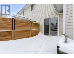 Tucked away on a quiet cul-de-sac in Kingston's west end, this all-brick townhome offers a fantastic combination of comfort, location, and potential. The main floor features a convenient powder room and an open-concept eat-in kitchen and living area, complete with a gas fireplace and sliding doors leading to a deck overlooking a deep, fully fenced backyard - Ideal for relaxing, entertaining, or letting kids and pets play. Upstairs, you will find two generously sized bedrooms and a 4-piece bathroom with soaker tub and separate shower, providing a functional and comfortable layout. The lower level is unfinished and ready for your imagination, offering excellent potential for additional living space. Lastly, this home features a single car garage as well as parking for 3 vehicles. Located close to shopping, parks, and schools, and just minutes from the trails and waterfront at Lemoine Point Conservation Area, this home is perfect for those seeking a quiet setting with easy access to everyday amenities and outdoor recreation. (id:61594)