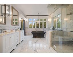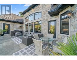 A Masterpiece of Craftsmanship and Permanence! Nestled beside a protected natural landscape with scenic year-round views of the Grand River, 546 Woolwich Place offers artistry, luxury, and privacy. With direct private access to the Grand River Trail from its gated yard, this home stands as a true legacy estate. The exterior features hand-chiseled Indiana limestone, an Enviroshake hurricane-rated roof, and a custom 9' African Mahogany front door. Professionally designed lighting highlights the architecture, while mature landscaping boxwoods, maples, and walnuts thrives under a six-zone irrigation system. Two driveways add rare functionality. Inside, every detail reflects craftsmanship. Solid wood architraves, 9.25" baseboards, and solid wood doors with platinum hardware set the tone. Exotic Red Laurel and Cocobolo hardwood floors flow throughout, anchored by a grand maple staircase with wrought iron railings. Radiant floor heating provides year-round comfort. Elegant plaster crown mouldings, Swarovski Schonbek chandeliers, and natural gas fireplaces enhance the ambiance. The primary suite is a spa-like retreat with book-matched Carrara marble, steam shower with body jets, two-person tub with Rubinet Swarovski crystal fixtures, and a linear fireplace set in Turkish stone. The powder room shines with platinum-infused Italian tiles and Swarovski sconces. A custom cherrywood study, crafted by artisans who built for notable successful Canadians, features 13' coffered ceilings and a Texas Longhorn leather-inset desk. All cabinets throughout the kitchen, laundry, and primary bedroom are Downsview cabinets. Wellness amenities include a Western Red Cedar sauna with cold plunge. A heated 900 sq. ft. triple-car garage with insulated cedar doors, smart home monitoring, and a Viessmann boiler system complete this extraordinary home, where timeless craftsmanship meets modern luxury amid unobstructed river and waterfront views. (id:61594)