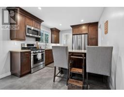 Step into this beautiful 3 bedroom, 2 bath, 4 level side-split in desirable Byron where thoughtful updates meet everyday comfort! The heart of this home is the bright spacious living room which is next to the stunning kitchen and dining area expertly renovated by Millennium Design. A removed wall creates a great flow and highlights the gorgeous kitchen cabinets with elegant crown molding, gleaming granite counters and a convenient peninsula style island, perfect for meal prep and casual dining. The large format floor tiles bring a modern touch. A new patio door opens to your spacious pressure treated deck complete with a gas hookup for BBQs - ideal for summer entertaining! Inviting neutral tones create a warm, welcoming atmosphere. There is laminate flooring in the living room and hardwood in the three second floor bedrooms. Both bathrooms have been tastefully updated - the main 4 piece bath boasts a sleek tiled shower, modern vanity, and a space saving pocket door was added, while the lower 3 piece bath charms with funky patterned black and white floor tiles.The versatile 3rd level family room features an electric fireplace insert and wet bar, perfect for movie nights or entertaining guests. The 4th level offers fantastic bonus space - use it for storage, a home gym or a hobby area. Outside, the newer privacy fence creates a safe haven for kids and pets, while the lane way accommodates three vehicles. Located just steps from parks, Boler ski hill, scenic walking trails and top-rated schools, this home is perfect for young couples or established families. Pride of ownership is evident throughout & notable updates include: roof (2022), furnace (2018), owned water heater (2022), most windows plus interior & exterior doors have been replaced. This cherished home is ready for your family's next chapter! (Matterport Sqft above grade 1,073, 3rd level sqft 565) (id:61594)