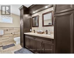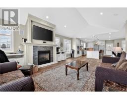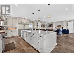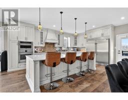 This custom built home commands attention. Set on a spacious 1 acre lot in the community of St. Anns, this stunning 2-storey home delivers over 6,500 sq ft of living space and two in-law suites that are ideal for multi-generational living. This home combines scale, craftsmanship, and a level of interior finish rarely found at any price point in West Lincoln. From the moment you step inside, the level of craftsmanship is evident. A grand two-storey foyer features polished tile and a dark hardwood staircase with iron spindles. The main level flows seamlessly between the great room, kitchen, and dining area. The chef's kitchen is a true showpiece: custom soft-grey cabinetry, a large quartz island, professional-grade gas range, double wall oven, and built-in fridge/freezer - with direct walk-out access to a covered outdoor sitting area. Inside or outside, this space was built to entertain. The family room is anchored by a cathedral ceiling, arched transom window, gas fireplace, and built-in media cabinetry. The main floor also features a dedicated home office, den, 3-piece bathroom, laundry room & mud room. The generous primary suite has engineered hardwood floors and a spa-quality ensuite complete with a freestanding soaker tub, frameless glass shower with dual shower heads, a double vanity with dark cabinetry and granite counters. Additional bedrooms are well-sized with engineered hardwood floors and quality finishes.A 5-piece bathroom serves the upper level with a tub and shower combination and double vanity. The finished walk-out basement is home to two completely self-contained in-law suites - each featuring a private kitchen, open-concept living area, bedroom, and full bathroom. The property also includes an attached garage with parking for 3 cars, a large private driveway, a covered front porch, and a shed. Two furnaces service different portions of the home, while one tankless hot water tank services the whole home. (id:61594)