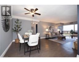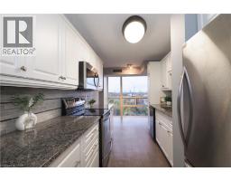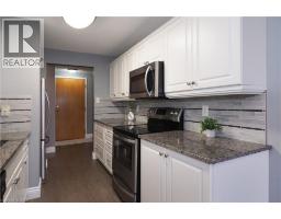 $638.70 MonthlyON TOP OF THE WORLD! Enjoy the scenic views of the beautifully wooded grounds, trails and sparkling lights of the city through the floor to ceiling windows in this captivating 2 bedroom, 2 bath PENTHOUSE condo located in the sought after 'Atriums'. It will be a joy to cook in the beautifully upgraded kitchen with white shaker style cabinetry with soft close hinges, pantry with pull-out drawers, stainless steel fridge & stove, granite counters and mosaic backsplash situated next to the bright breakfast nook. You'll appreciate the abundant sunlight offered in the spacious living room and inviting dining room. The convenient in-suite laundry offers more storage. The primary bedroom features 2 closets and a RENOVATED ENSUITE BATHROOM with a glass shower, granite vanity and 2 sinks. The second bedroom is situated at the opposite end right next to the updated second bath offering privacy and comfort. One underground parking space and 1 locker included. Building features 2 party rooms, roof-top lounge, library, workshop and a guest suite. Desirably located close to greenspace, expressway, shopping and restaurants. PANORAMIC VISTAS! (id:61594)