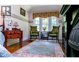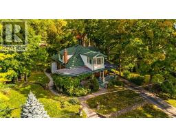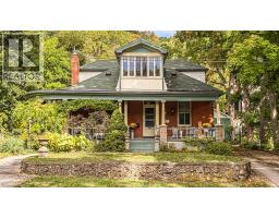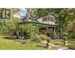 With a wraparound porch you’ll never want to leave, 55 Cayley is the one you’ve been waiting for. This victorian cottage is perfectly located in one of Dundas’ most desirable neighbourhoods, the home is steps from Dundas Driving Park, close to trails, schools, and the vibrant shops and cafés of Downtown Dundas. Accented by original coal gas fixtures, detailed carpentry, and warm woodwork, it radiates charm and character throughout. Inside, soaring 10’ ceilings, oak hardwood floors, and oversized windows create a bright natural flow. The main floor offers true one-floor living with a spacious front hall, elegant living room or office, sprawling family room with ornate gas fireplace, generous bedroom, and full bath. A butler’s pantry leads into the kitchen, filled with original character and framed by garden views. From here, step into the bright sun porch with walkout to the rear gardens. The separate dining room opens out to the side garden, where a 1920s gazebo and stonework create an enchanting, secret-garden setting—perfect for intimate gatherings or quiet reflection. Separate staircases lead to the 2nd floor, where you’ll find a rear bedroom or den, full bath, ample storage, and a generous primary retreat with dormer windows, electric fireplace, and walkout to an enclosed terrace overlooking the streetscape and treetops beyond. The lower level provides laundry, storage, and walk-up access to the yard. Outdoors, mature gardens, multiple sitting areas, a powered garage and separate studio space, long driveway, and versatile outbuilding add practicality and flexibility. Set on a rare double-wide lot of more than 0.25 acre, this property offers space, privacy, and presence rarely found in Dundas. (id:61594)
