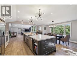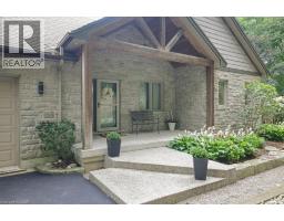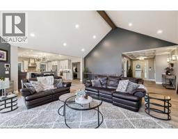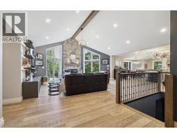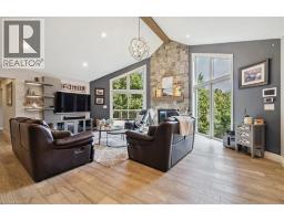 Experience executive one-floor living at its absolute finest in the heart of Grimsby Niagara! This landmark estate sits proudly on 1.5 private acres, perched on the edge of the breathtaking Niagara Escarpment, offering a sense of seclusion and natural beauty reminiscent of a luxury Muskoka retreat—without leaving town. Inside, over 3,000 sq. ft. of meticulously transformed main-level living awaits, complemented by a fully finished walkout lower level. The home boasts four spacious bedrooms, each with its own custom ensuite, all thoughtfully arranged on one floor for seamless flow. The show-stopping A-frame great room features soaring cathedral ceilings and a dramatic floor-to-ceiling stone fireplace, framed by a wall of windows that capture the tranquil ravine views. The adjacent designer kitchen impresses with an oversized 11-ft island, top-tier stainless-steel appliances, and walkout access to an expansive deck—perfect for entertaining or quiet mornings surrounded by nature. The lower level is equally extraordinary, offering a state-of-the-art theatre room with built-in wet bar, a private workout space, two home offices with inspiring views, and a fully self-contained legal in-law apartment with its own ground-level entrance. Outside, the property continues to shine with stunning rock gardens, an outdoor shower, parking for a dozen vehicles, a powered and heated 20’ x 30’ detached garage in addition to the heated double attached garage, and a large 17’ shed. All of this within walking distance to downtown shops, dining, and the Bruce Trail. So many impressive features like 2 gas fireplaces, double furnaces and zoned heating and cooling, an abundance of engineered hardwood floors, designer ceilings and smart home features. This property is more than a home—it’s a lifestyle. Rarely does a residence of this caliber come to market. Don’t miss your chance to own one of Grimsby’s most remarkable addresses! (id:61594)