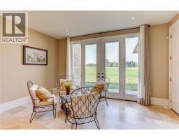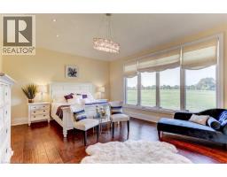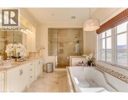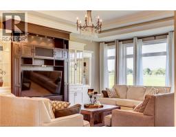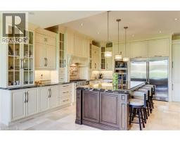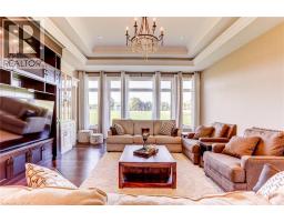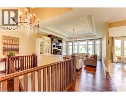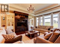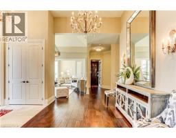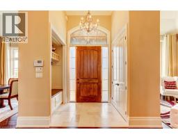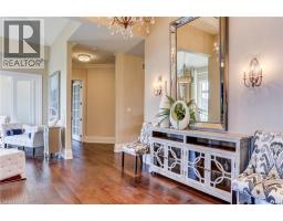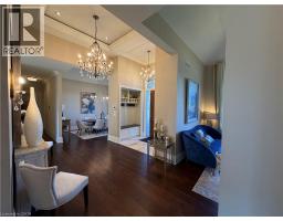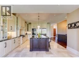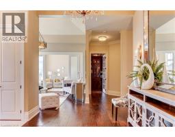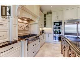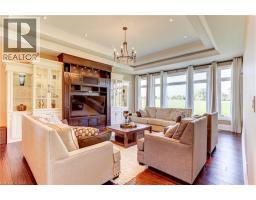 An exceptional estate residence set within one of Dundas’ most prestigious enclaves. Gracefully positioned on a pristine, professionally landscaped 1.5 acre property backing onto the protected conservation lands of Tews Falls, this remarkable bungalow offers over 4,020 sq ft of refined main-level living. A separate, elegantly appointed cabana adds 1,034 sq ft, including 640 sq ft of fully finished space with a private bedroom, bathroom, kitchen, and heated flooring—ideal for guests or extended family. Meticulously crafted with the finest materials and finishes, every detail reflects timeless sophistication. Soaring coffered ceilings (10–13 ft) create striking architectural presence, while expansive principal rooms flow seamlessly beneath custom millwork, oversized baseboards, intricate crown mouldings, and designer lighting. The chef’s kitchen is an entertainer’s showpiece, featuring top-tier appliances, bespoke cabinetry, and an oversized island. The main level offers four spacious bedrooms, including an opulent primary suite with dual walk-in closets, serene garden views, and a spa-inspired ensuite with heated flooring. The partially finished lower level (approx. 3,000 sq ft, with 1,500 sq ft finished) includes a fifth bedroom, living area, private gym, and a separate side entrance—ideal for extended family or added flexibility—finished to the same elevated standard with wide-plank flooring, custom built-ins, and premium fixtures. Outdoors, enjoy a private putting green, mature trees, and breathtaking conservation views. A four-season sunroom allows year-round enjoyment, while a multi-bay garage accommodates up to five vehicles. Recently enhanced with high-end upgrades, this distinguished estate offers a rare blend of luxury, privacy, and natural beauty. (id:61594)
