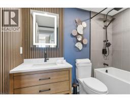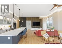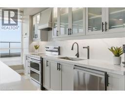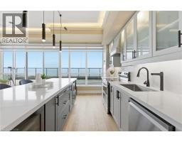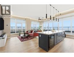 Experience luxury lakeside living in this stunning, fully renovated corner-unit condo featuring two bedrooms, two bathrooms, and 1,035 square feet of open-concept space. Floor-to-ceiling windows flood the home with natural light while framing sweeping views of the Niagara Escarpment, Lake Ontario, and even the Toronto skyline. Step outside onto the incredible 700 square foot wraparound terrace — perfect for entertaining, relaxing, or simply taking in the breathtaking scenery. The heart of the home is a brand-new kitchen featuring a massive quartz island with seating for six, high-end stainless steel appliances, and sleek finishes that elevate everyday living. Engineered hardwood flooring, smooth ceilings, smart lighting, and custom roller blinds run throughout, adding a touch of modern sophistication. The primary suite includes a walk-in closet and a beautifully renovated ensuite, while the second full bathroom has also been tastefully updated. Enjoy the convenience of full-sized in-suite laundry, two parking spaces, and a storage locker. Residents have access to exceptional building amenities, including a party room, lounge, billiards room, gym, and rooftop patio. Located just steps from the waterfront trail and Grimsby on the Lake’s charming shops and restaurants, this condo offers the perfect blend of comfort, style, and location. With quick highway access and a short drive to Hamilton, Niagara Falls, and all major shopping and entertainment, this home truly has it all. Don’t be TOO LATE*! *REG TM. RSA. (id:61594)