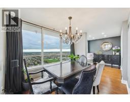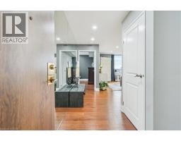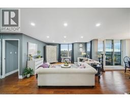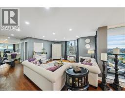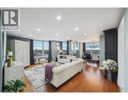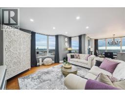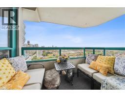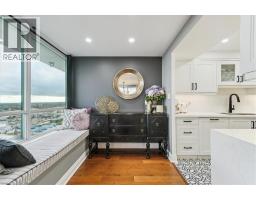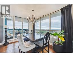 Set majestically high on the 26th floor of the Phoenix Condos, this rarely offered corner suite offers 1,280 sq. ft. of elegant living space with panoramic, unobstructed city and lake views. Featuring southeast facing exposure with a private balcony, this fully renovated residence combines style and functionality in a prime location just minutes from Square One, GO Transit, major highways, shopping, schools, and parks. Beautifully appointed interior upgrades include walnut-stained engineered hardwood floors, extra-deep baseboards, smooth ceilings and pot lights (2024). The modern kitchen is equipped with high-end Fisher & Paykel, Bosch, Sharp and Asko appliances, custom cabinetry, quartz counters, and a hidden stackable washer/dryer. The inviting open-concept layout separates two spacious bedrooms for maximum privacy, each offering walk-in or built-in California Closets. Two fully renovated bathrooms (2021) feature premium fixtures and spa-inspired finishes. Additional highlights include a full mirrored entry wall (2021), custom window coverings (2024), gallery-style hallway, two furnaces (with new fan coil insulation 2024), and two owned parking spaces. Residents enjoy resort-style amenities including a 24-hour concierge, indoor whirlpool, sauna, fitness centre, tennis court, squash court, party room, library, and landscaped outdoor spaces. (id:61594)