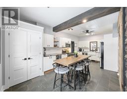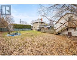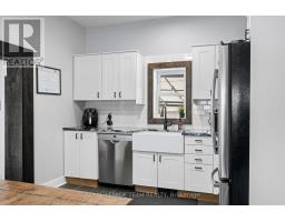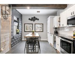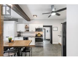 Beautifully renovated home blending modern upgrades with timeless character, ideally situated on a desirable corner lot. Extensive improvements since 2020 include all new flooring throughout, fresh neutral paint, updated lighting, and widened interior doorways with modern 4-panel doors and hardware. The main floor features a fully redesigned kitchen with GE stainless steel appliances, granite countertops, white shaker cabinetry, subway tile backsplash, LED pot lighting, and a 32" farmhouse sink. Original 1920 tin ceilings and crown moulding have been refinished in crisp white, adding charm and character. A convenient mudroom addition off the kitchen offers additional storage and access to the backyard, along with a stylish black steel entry door. Upstairs, the second floor includes a renovated full bathroom with new plumbing, a large porcelain tub with full-height tile surround, new vanity and toilet, plus a custom barn board accent wall. The primary bedroom features a newly created walk-in closet. The third floor offers additional living space with updated laminate flooring. Step outside to enjoy a fully fenced yard with double gate access from the street, perfect for trailers, equipment, or added convenience. A standout feature is the authentic original barn with loft, ideal for a workshop, hobby space, or at-home business setup. Additional updates include armour stone front steps, refinished staircases on all three levels, interior barn doors, updated half bath with full-size stackable laundry and new mechanicals including furnace (2024), hot water tank (2020, gas), air conditioning (2020) and sand point well (2025). Windows were previously updated (approx. 2013). Located within walking distance to the public school, post office, and general store, and just a 2-minute drive to the grocery store, this home offers the perfect blend of small-town convenience and modern living.All measurements as per Iguide Floorplan. Buyer to confirm all room sizes. (id:61594)