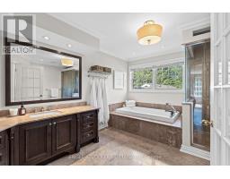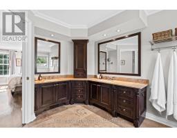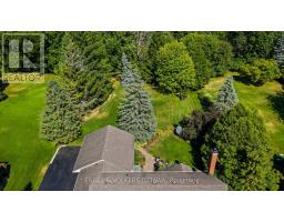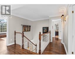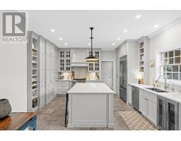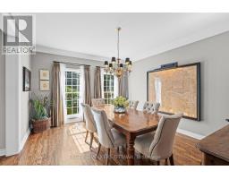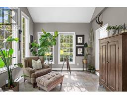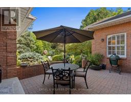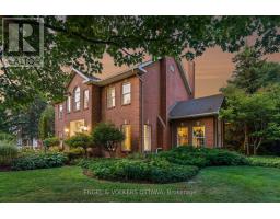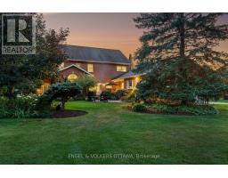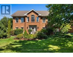 Poised on a serene ravine lot within the prestigious enclave of Manotick Estates, this beautiful Georgian-inspired all-brick residence embodies distinguished architectural character and timeless elegance. Upon entry, elevated ceiling heights, custom millwork, and a gracefully crafted hardwood staircase create an immediate sense of sophistication. The traditional cross-hall plan reveals a formal living room with soaring windows and an elegant gas fireplace, complemented by a grand dining room ideal for entertaining. At the heart of the home, the open-concept kitchen showcases bespoke Cabico cabinetry, quartz countertops, and premium stainless steel appliances. The adjoining breakfast area flows seamlessly into a warm and inviting family room, anchored by a handcrafted brick wood-burning fireplace of exceptional character. Extending from this space, a spectacular sunroom wrapped in floor-to-ceiling windows offers panoramic views of the landscaped grounds and private ravine setting. Thoughtfully designed, the layout also includes a charming side entrance with a covered porch, leading into a well-appointed mudroom and laundry area, along with a versatile office that could easily serve as a main floor bedroom. The home's upper storey is graced with an elegant and spacious primary suite, featuring a stunning ensuite with dual custom walnut vanities, a travertine glass shower, deep soaker tub, and heated flooring. Three additional bedrooms, each generously scaled and filled with natural light, share access to a beautifully appointed bathroom. The meticulously finished lower level presents a cozy family room with a striking feature brick wall, versatile flex rooms ideal for a gym or recreation space, abundant storage, and convenient direct access to the garage. Outdoors, the enchanting backyard evokes the charm of an English garden, with a serene courtyard, water features, and sweeping views of the private ravine lot, a perfect setting for future poolside living. (id:61594)