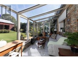 This property really has it all! Meticulously kept home, 3+1 bedroom plus a den, boasting over 3 acres of maintained land - zoned A1, 30 x 40 triple car garage, oversized 20 x 30 bonus workshop, studio or other endless possibilities. The back piece of the property is separated by babbling brook, and a small pond complete with new dock and a fountain. The old barn is full of charm and character - the upper portion has hosted family wedding celebrations and has a unique open window perch with picturesque scenic outlook of back property. The lower barn is great for storage and is complete with own electrical panel, four stalls and gorgeous thick wood floorboards with many 18 inches wide. Throughout this well laid out versatile property you will also find a charming small fruit orchard - peach, pear, 3 apple, 2 plum and 2 cherry, vegetable gardens, flower gardens, a vibrant variety of trees and plants, saltwater above ground pool (2023), hot tub and an overall sense of pride in every corner of this property. Inside you will find a welcoming space with exceptional updates, including open concept, gourmet kitchen (2020), new engineered hardwood flooring (2020), newer windows and a show stopping solarium - perfect to watch all 4 seasons right from the comfort of this bright and cozy all glass nook. Many other updates and features - make sure to ask for the additional property information document. This property is special. Truly a one of a kind and must be seen in person to fully appreciate. (id:61594)