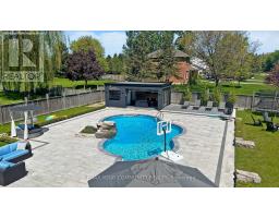 Stunning 4,727 sq ft home by Vissa Homes with quality upgrades and workmanship! Over 7,000 sq ft finished living space. Nestled on 3/4 acre manicured grounds in Cam Fella Estates, walking distance to Main Street Stouffville, Shops, Restaurants & Go Stations. Features 16 ft high foyer, unique hidden private office with built-in desk / shelves, formal dining room, open concept family room overlooking the kitchen with Caesar stone center island & high end appliances, breakfast area with skylights and open servery bar corner with full size wine fridge. The upper level offers 4 bedrooms all with private ensuite baths with heated floors, open concept loft area and convenient laundry room. The primary bdrm features walk-out to private balcony overlooking the amazing back yard. The professionally finished lower level is the perfect hub for your family gatherings w/games area, sound proof home theatre, recreation area with wet bar, climate controlled wine room and even your very own professional private gym. Outstanding resort style backyard. Landscaped to perfection w/salt water inground pool with waterfall, hot tub, cabana with washroom and kitchenette, lounge area, fire pit, super amazing sports court, covered BBQ area and so much more. Special attention to every detail to satisfy every member of the family. ~ Built with pride ~ This home is ready for your indoor and outdoor entertainment! (id:61594)