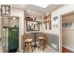 Located on a small crescent across the road from the lake and close to downtown.This bungalows two living levels add up to approximately 2400 square feet of finished living space. You can walk down town or to the Burlington golfclub. Living Rm has a warm and cozy Stone Fireplace. There is easy access to the back deck from the sliding dining room door . Parents can watch their children play in the back yard through a well placed kitchen window. Upgrades in the kitchen include cupboards, pot drawers,granite counter tops,mirrored backsplash, large skylight and ceramic flooring.Main bath upgrades include, whirlpool soaker tub with marble surround,pedstal sink,walk in shower and marble flooring.The lower level offers a large guest room,rec room ,music room (den),laundry room and a professional work shop.Oh Yes the very private back yard also has a pond and water fall for gold fish or water gardeners . Also important to note is the , Room for Four Lots of Fun Sundance Hot Tub. Improvements are a pleasure but location is forever so check this one out .There is more to say but I am running out of space so call for an appointment to view. (id:61594)