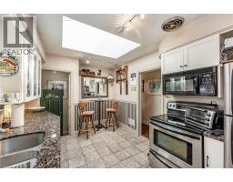 Located on a quiet crescent across from the lake in Aldershot.Two levels add up to approxamately 2400 sq feet of finished living space.Beautiful stone gas fireplace that can be converted back to wood burning.Easy access to the back deck from the dining room sliding doors Handsome ceiling coving and hard wood floors in the living and dining rooms.Kitchen upgrades include ceramic flooring,pot drawers,granite counter tops,mirrored backsplash and a large bright and cheery skylight.Upgrades in the main bath enclude pedistal sink,whirlpool tub with marble surround, separate shower and marble flooring.Lower level offers a large guest suite,4 pc bath,music room,recreation room ,laundry room and professional workshop with storage.The private well treed back yard offers a pond with water falls for fish and water gardening ,elevated deck, stone patio and a Room for Four or More Sundance Hot Tub. Walk to downtown and Spencer Smith Park or maybe the Burlington Golf Club.Enjoy one floor living with out the condo fees in this beautiful one floor bungalow by the lake. (id:61594)