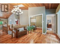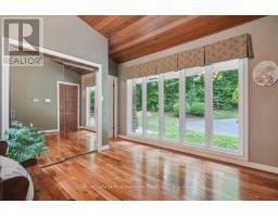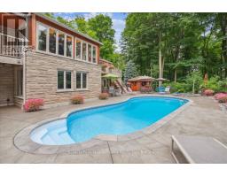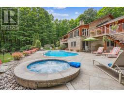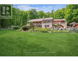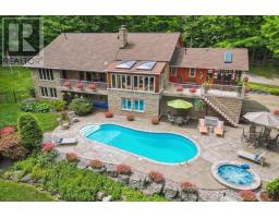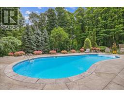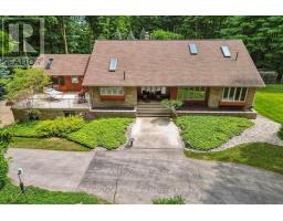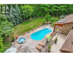 Discover an unparalleled gem rarely available on the market: a private and serene estate with a custom-designed home that fulfills every dream. Set on over 10 lush acres amidst the stunning Niagara Escarpment, this meticulously cared-for property is just minutes from the 401 and downtown Milton. Surrounded by vibrant perennial gardens and towering mature trees, this home is perfectly positioned in the heart of Halton Conservation's premier parks. You'll be just moments from Kelso Conservation Area, Rattlesnake Point, Crawford Lake, Hilton Falls, and the Bruce Trail ideal for outdoor enthusiasts and nature lovers. The custom-built bungalow features over 6,000 sq. ft. of exquisite living space. Its open-concept design showcases vaulted ceilings, a double-sided stone fireplace, a spacious kitchen with pine cabinets, granite countertops, and an island. A convenient wet bar, elegant dining room, and a fantastic outdoor screen room offers the perfect space for 3-season entertaining. Enjoy stunning views from walkout decks off the kitchen, screen room, sun room, and master bedroom balcony. The lower level is a haven of relaxation and recreation. You will find a large recreation room with a cozy wood-burning stove, a games room, four additional bedrooms, and access to a three-car garage. Walk out to a luxurious inground pool with a hot tub, cabana, and a soothing water feature. The home is equipped with a 400-amp electrical service, a propane-powered generator, and a geothermal heating and cooling system. A separate two-car garage provides the ideal "Man Cave" and additional storage for garden equipment. Garden enthusiasts will love the large greenhouse/potting shed, and the property boasts a fire pit with a patio area, night landscape lighting, and over one kilometer of meticulously groomed walking trails. Why settle for a cottage when you can have this dream home without the drive? Experience the ultimate in luxury and tranquility this is truly what dreams are made of! (id:61594)