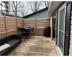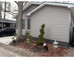 Welcome to Komoka - where simplified living meets elevated design in a welcoming 55+ community. This beautifully maintained 2-bedroom, 2-bath home offers the perfect blend of comfort, functionality, and contemporary style - without the upkeep of a larger property. The heart of the home is a show piece, white shaker kitchen featuring a massive island designed for gathering, hosting family, or enjoying quiet mornings with coffee. Custom built-in cabinetry throughout the kitchen, bedrooms, and bathrooms provides exceptional storage - giving you space for what matters, without the clutter. Step through the patio doors off the living room onto a spectacular wrap-around 400 sq ft covered deck complete with pot lights and hot tub - the perfect extension of your living space. Whether you're entertaining, relaxing with a book, or enjoying warm summer evenings, this outdoor retreat delivers comfort without maintenance. Here, you're not just downsizing - you're upgrading your lifestyle. Enjoy access to a licensed community centre, swimming pool, dog park, and dedicated event spaces that make it easy to stay active and connected. Low maintenance. Strong sense of community. Thoughtfully designed living. (id:61594)