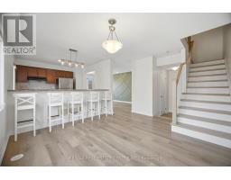 $158.27 MonthlyBeautiful & spacious CORNER UNIT townhome in the highly sought-after Alton Village, quietly tucked away while still offering convenient access to top-rated schools, shopping, restaurants, parks, and major highways. Backing onto green space and facing the park, this home is surrounded by mature trees, providing a private and naturally secluded setting. Bright northeast exposure fills the home with abundant natural light throughout the day. This carpet-free home features durable vinyl flooring throughout and modern pot lights, creating a warm and inviting atmosphere. The open-concept main level is ideal for both everyday living and entertaining, highlighted by a stylish living room with elegant wall paneling, a spacious dining area, and a well-appointed kitchen complete with stainless steel appliances, ample cabinetry, and a functional layout. Enjoy outdoor living on the wrap-around corner balcony, perfect for morning coffee or evening relaxation, with beautiful views of the surrounding greenery and the Niagara Escarpment. An upgraded oak staircase leads to the upper level, where you'll find two generously sized bedrooms, including a primary retreat with a walk-in closet and 3-piece ensuite, along with a well-maintained 4-piece bathroom for added convenience. The lower level offers a versatile media/den space or extra bdrm, a convenient laundry area, and inside access to a spacious garage with additional storage. This private recently updated corner unit townhome is an exceptional opportunity, featuring low maintenance fees in one of Burlington's most desirable family-friendly communities. (id:61594)