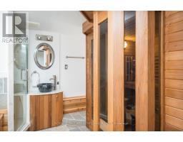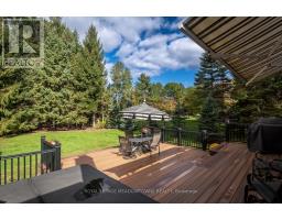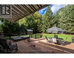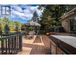 Country charm. Modern comfort. Room to breathe. Welcome to 56 Acredale Drive - a beautifully maintained Carlisle bungalow set on a rare half-acre lot, just steps to the library, community centre, amenities, and nearby golf courses. Enjoy small-town serenity without sacrificing everyday convenience. Offering over 2,000 sq ft of above-grade living space, this home is designed for both entertaining and easy living. A double garage and six-car driveway welcome guests, while main-floor laundry and interior garage access add everyday practicality. The bright eat-in kitchen features white cabinetry, granite counters, tile backsplash, and walkout to a two-tier deck with remote controlled retractable awning - the perfect place for summer evenings overlooking the expansive backyard complete with a relaxing hot tub. Inside, elegant millwork, hardwood flooring, crown mouldings, French doors, and oversized windows fill the home with warmth and natural light. Separate living and family rooms plus a formal dining room offer flexibility for families and gatherings alike. The primary retreat includes multiple closets and a private ensuite, while two additional bedrooms share a full bath. Downstairs, the fully finished basement extends the lifestyle: a spacious rec room with built-ins, two versatile bonus rooms (ideal for bedrooms, office, or gym), workshop, sauna, and a full bath with jacuzzi tub - perfect for guests or multi-generational living. Serviced by municipal community well and septic, and equipped with owned on-demand hot water heater, sump pump, and water softener - comfort and peace of mind come included. Space, privacy, and a true community setting - this is Carlisle living at its best. (id:61594)