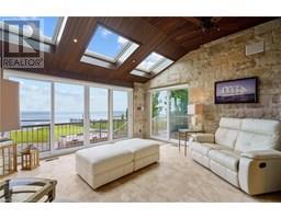 Welcome to 56 Aquamarine Drive — a luxurious 4700 sq ft custom waterfront home with direct lake access, private elevator, and a triple car garage with vehicle/boat lifts. This 4 bed, 6 bath masterpiece offers high-end finishes throughout, including a gourmet Viking kitchen, grand dining room, sunroom with skylights, and multiple fireplaces. Each bedroom features its own ensuite, ideal for multigenerational living. The primary suite offers a lakeview balcony, spa-like bath, and fireplace. Enjoy a 14’ swim spa, beautifully landscaped yard, new seawall, and upper/lower patios overlooking the lake. Located on a quiet court near marinas, highways, shopping, and Niagara wine country. Luxury Certified. (id:61594)