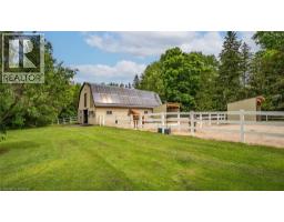 A picture perfect 2.64 Acre hobby farm just north of Burford. Spacious Four level sidesplit home with attached garage. Three or four bedrooms, updated kitchen overlooks the main floor family room. Walk out from both rooms to yard , deck and pool. Separate dining room. Updated windows. Updated main bath. Second three piece bath off main floor laundry. Office, main floor laundry, family room with woodstove, lower level recreation room or gym with a fully finished storage room that could be a playroom etc. 1400 sq ft Six stall horse barn, two stalls have SoftStall mattress floor.. Separate wash stall, heated tack room and large upper hay loft. Water and hydro in barn. Wifi network to both horse barn and workshop as well as the house.. Mud free footing in dry lot paddocks, sand riding ring with excellent footing and drainage. Large flat grass paddock. Workshop is another separate building of approx 850 sq ft. currently used for storage and golf simulator. Fenced paddocks. And for those days that you need to cool off.... an inviting Inground pool with surrounding deck. Small creek meanders across the back. Sandy soil. A perfect package for someone who has horses or other livestock. Nice house, pool, barn with loft and workshop. Pool updated to salt water with new compsite deck and covered patio. Curbside garbage pick up. 3 minutes to Burford, less than 10 minutes to Paris, easy #403 access for commuters. Children bused to school. (id:61594)
