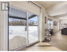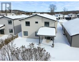 Welcome to 56 Fraser Drive in Batawa, where modern design meets thoughtful upgrades and a private, tree-lined setting. This is the "Alpina" model inspired by chalets. This one was formerly the show home that has been loaded with upgrades. It offers 3 bedrooms, 2.5 bathrooms, an office, an open-concept layout, and 9-foot ceilings that create a bright, spacious feel throughout the main level. The stunning kitchen is built for everyday living and entertaining, featuring a 10-foot island, quartz countertops, lots of cupboard space, a large pantry, black appliances, upgraded extractor fan, and pot lights flowing seamlessly into the dining and living areas. The living room offers a cozy natural gas fireplace and stylish custom blinds from Select Blinds, while just off the main space is a covered patio (approx. $15,000 upgrade) that extends your living area outdoors. The custom laundry room includes a quartz counter, additional storage and newer LG washer and dryer (approx. 2 years old). Built on a slab foundation with in-floor heat on the main floor and upstairs bathrooms, the home also features a fully insulated attached garage and Bell alarm system. Upstairs you'll find a bonus sitting room or potential playroom, main bath with double sinks, XL linen closet, and a very spacious primary bedroom with an extra large walk-in closet and private ensuite. Outside, the interlocking walkway adds curb appeal, and there's a private backyard, including beautiful lilac trees. Located in Batawa, you're minutes from the Lower Trent Trail, nature trails, and Batawa Ski Hill, offering year-round recreation in a scenic community yet close to all of the amenities of Trenton. The home has been meticulously cared for with nothing to do but move in, book your showing today! (id:61594)