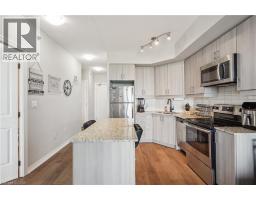 Welcome to this beautifully appointed 1-bedroom plus den condo, perfectly situated in the vibrant and growing community of Grimsby on the Lake. Offering approximately 670 sq ft of thoughtfully designed living space, this modern unit features a functional open-concept layout, seamlessly combining the kitchen and living area—ideal for both everyday living and entertaining. The bedroom is complemented by a well-designed 4-piece bathroom, while the versatile den provides the perfect space for a home office or guest area. A convenient 2-piece powder room adds extra comfort for visitors. Enjoy the ease of in-suite laundry, along with the added value of underground parking and a private storage locker. Take in scenic views from your living space and enjoy access to fantastic building amenities, including a large party room and a beautiful rooftop terrace-perfect for relaxing or hosting gatherings. Located just minutes from the highway, shopping, dining, and the waterfront, this condo offers a great blend of lifestyle and convenience. An excellent opportunity for first-time buyers and investors alike. (id:61594)