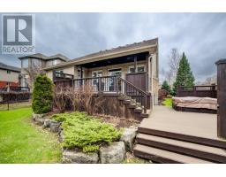 An abundance of bright, airy space, soaring ceilings and exceptional versatility characterize this handsome Conservation Meadows bungaloft, nestled on an oversized lot just a stone's throw from Laurel Creek, and a short 5-minute drive from the St. Jacob's Farmer's Market. 560 Springwater Drive impresses right from the start, with curb appeal and manicured landscaped grounds. The sprawling main level reveals itself from a welcoming foyer, with a flexible office space located to the left - which could also be easily repurposed as a bedroom, given its abundant closet space. Off to the right lies inside entry from the double garage, with a full four-piece bathroom and main floor laundry room rounding out the wing. The kitchen lies at the heart of the home, with ample storage and prep space, a graciously sized breakfast bar, and views through to the open concept living and dining space with its cozy gas fireplace, towering ceiling height, updated skylights, and sliding walk-out access to the covered, multi-tiered composite deck at the rear of the home. There's more than enough room here for entertaining in warmer weather, with a hot tub incorporated in the lower portion, and neatly kept gardens in the fully fenced yard beyond. At the rear of the home is the primary suite - a peaceful space with private walk-out access to the deck, a massive walk-in closet, and a five-piece ensuite with dual vanities and a tub. Upstairs is even more bright living space - highlights include an additional two bedrooms (one with its very own private walkout balcony), another four piece bathroom, and a sizable family room ideal for more casual get-togethers. The partially finished basement provides a rough-in for a powder room, yet another bedroom, ample storage space, and something of a blank canvas for your own creative urges. Whether upsizing, making the switch to multi-generational living, or simply searching for something that truly wows you - this home is not to be missed! (id:61594)