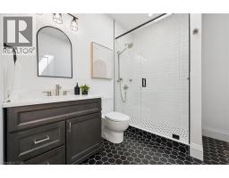 Private Oasis in Waterloo. This one-of-a-kind, fully renovated home offers a cottage-like retreat just minutes from city amenities. Set on 3.7 acres surrounded by trees, a pond, and nature, it combines luxury finishes with smart home technology to create a truly signature property. Inside, the open-concept living room features soaring vaulted ceilings, a propane fireplace, and expansive windows that flood the space with natural light. The chef’s kitchen boasts quartz counters, a spacious island, high-end appliances, pot filler, custom backsplash, and an adjoining pantry with built-in microwave, additional oven, fridge, wine rack, and storage. Perfect for entertaining, the main floor also includes a stylish dining area, built-in bar, walkout to a deck with power awning, and a 4-pc bath. Upstairs, the primary suite is a private sanctuary with breathtaking views, a large walk-in closet, and a spa-like 5-pc ensuite featuring a soaker tub, glass shower, and double sinks. Two additional bedrooms, a 3-pc bath, and convenient upper-level laundry complete this floor. The finished lower level includes heated tile floors, a rec room with cozy wood fireplace and walkout, rough-in for a wet bar, an additional bedroom, office with separate entrance, and a 3-pc bath.The mechanical features include updated electrical & plumbing, Lennox heat pump with backup propane furnace, R/O system and new carbon filter for drilled well, new septic system, solar panels on flat roof generate electricity. Smart home features throughout. Outside, enjoy a private front yard, secondary driveway which allows extra parking, a large patio overlooking the pond with sandy beach and floating dock, plus two charming bunkies—one with a wood stove. All of this within minutes to shopping, schools, markets, and trails. A+++ (id:61594)