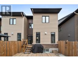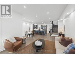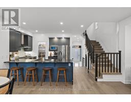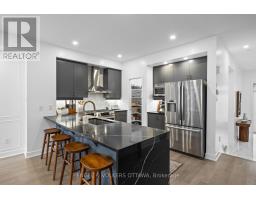 This meticulously maintained end-unit Urbandale townhome in Findlay Creek has been thoughtfully updated with fresh paint, custom wainscotting and accent walls, updated electrical features, new basement flooring, and a massive redesigned deck. The main level features striking tile flooring that leads into a bright, open-concept living, dining, and kitchen space with recessed lighting and wide-plank hardwood throughout. The kitchen features a large waterfall-edge island, sleek cabinetry, stainless steel appliances, a dedicated pantry, and a newly updated backsplash that adds a refined finishing touch. The dining area is filled with natural light and enhanced by elegant picture-frame wall moulding and direct access to the backyard through sliding glass doors. The adjoining living room is anchored by a modern gas fireplace and framed by tall windows. Upstairs, the spacious primary suite has a walk-in closet and a 4-piece ensuite featuring a soaker tub and walk-in shower. Two additional bedrooms are both generously sized with large windows and versatile layouts, ideal for family and guests, while a cozy den makes for a great office space. A 4-piece bathroom and a convenient second-floor laundry room with built-in cabinetry add to the day-to-day functionality of this level. The cozy lower level is complete with recessed lighting, updated flooring, and a 2-piece bathroom, making it the ideal space for a media room or an extra living space. The fully fenced, low-maintenance backyard shines in the summer months, featuring an expansive, newly built wood deck perfect for dining, lounging, and entertaining. Located in a quiet nook of a family-friendly neighbourhood, this home is near walking paths, parks, and only a few minutes from schools, a range of daily amenities and The Meadows Golf Club. Ideal for young families and professionals, this home delivers a well-rounded lifestyle in one of Ottawa's most desirable neighbourhoods. (id:61594)