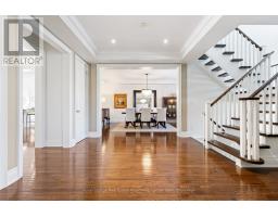 Welcome to 562 Gladwyne Court- an exceptional 5 bedroom estate residence quietly set on the most coveted street in the prestigious Watercolours community of Lorne Park. This refined home offers an elegant balance of traditional timeless design and modern luxury, thoughtfully curated for both elevated family living and sophisticated entertaining. Spanning approximately 6,626 sq.ft. of finished living space, the residence is set on a premium 75.26 x 130.16 ft. lot backing onto a private urban forest, creating a rare sense of seclusion in a tranquil, resort-like setting. A grand open staircase anchors the foyer, while 9ft. ceilings, rich hardwood flooring, and meticulous craftsmanship define the interiors. The classic centre-hall floor plan flows effortlessly, offering elegant living/dining rooms and a spectacular great room centred around a dramatic double-sided fireplace, seamlessly shared with a main-floor office. The chef-inspired kitchen is designed for both beauty and function, featuring sleek custom cabinetry, granite countertops, a generous centre island and premium integrated appliances. A walkout leads to the stone patio and spectacular private backyard, ideal for outdoor entertaining or quiet moments surrounded by nature. The upper level boasts 5 bedrooms anchored by a luxurious primary retreat, complete with double door entry, large windows, walk-in closet, and a spa-like five-piece ensuite. Four additional bedrooms are thoughtfully connected by two well-appointed Jack-and-Jill bathrooms, offering convenience for family and guests. The finished lower level provides an open concept, versatile recreation area, dedicated craft room, and ample storage. Located moments from top-ranked Lorne Park Secondary School, scenic trails, premier golf courses, the Port Credit GO Train, and the vibrant waterfront shops and restaurants of Port Credit, this distinguished residence delivers privacy, prestige, and effortless access to one of the GTA's finest communities. (id:61594)