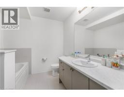 Welcome to this well-maintained, like-new townhome in Paris, showcasing over $20,000 in upgrades and thoughtfully designed for modern living. Step inside and be greeted by 9-foot ceilings on the open concept main floor, where an abundance of natural light fills the open spaces. The eat-in kitchen is the heart of the home, featuring upgraded white flat-panel cabinetry, stainless steel appliances, and a functional layout that flows seamlessly into the dining area. From here, sliding doors lead to your back deck, the perfect spot for relaxing or entertaining. A main-floor powder room adds convenience for guests, while engineered hardwood flooring throughout the main level and upper hallway adds warmth and style. The beautiful staircase with modern metal pickets leads you upstairs, where the spacious primary suite offers a relaxing retreat complete with a walk-in closet and a spa-like ensuite featuring a glass shower and separate soaker tub. Two additional bedrooms share this level, one with its own private balcony, along with the practicality of second-floor laundry. The unfinished basement is a blank canvas awaiting your finishing touches, providing the opportunity to add even more living space to suit your family’s needs. Perfectly located, this home is just minutes from Highway 403, the Brant Sports Complex, schools, restaurants, and shopping, offering both comfort and convenience in one desirable package. Don't miss the opportunity to call this your forever home, book your showing today! (id:61594)
