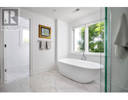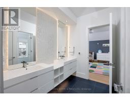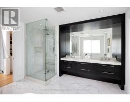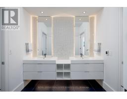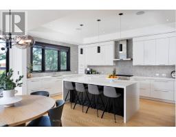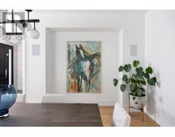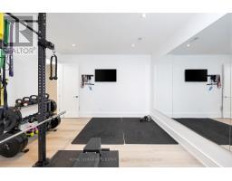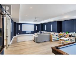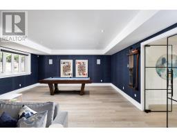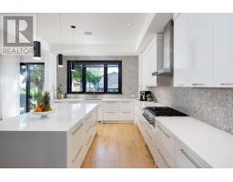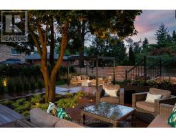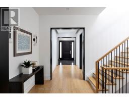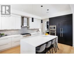 Nestled in one of West Toronto's most sought-after communities, this masterfully custom-crafted estate features 5 bedrooms, 7 bathrooms, and over 6,000 square feet of bespoke living space. As you step through the front entrance, you are welcomed by a grand foyer with seemingly endless sightlines extending through to the backyard, setting the tone for the luxurious experience that awaits. At the heart of the main level lies an incredible kitchen with custom cabinetry, premium Thermador appliances, and a family-sized island. Adjacent to the kitchen, the butler's pantry leads you to the grand dining room, perfect for entertaining. The open-plan kitchen and living area boasts a feature wall with a TV niche, linear gas fireplace, and built-in storage, creating a warm and inviting space for gatherings. Step through the rear garden doors and prepare to be enchanted by the meticulously designed backyard. This outdoor oasis offers multiple areas for al fresco dining, a relaxing retreat by the outdoor fireplace under a custom pergola, and ample space to bask in the sun amidst professionally manicured gardens. It is truly an oasis inspired by luxury hotel gardens. The master suite, located at the rear of the home, features striking vaulted ceilings, a chic 5-piece bathroom, a dressing room, a shoe closet, and a built-in vanity area. The spacious 2nd and 3rd bedrooms share an ensuite bath with a double vanity and separate water closet, while the 4th and 5th bedrooms offer private ensuites, ideal for guests or separate living quarters. The expansive lower level features an open-concept theatre and games room with a 100-inch screen and a 7.1 built-in sound system. Additionally, you'll find a spa-inspired full bathroom, bedroom or den, ample storage areas, laundry room, and a fully equipped mirrored gym/yoga studio. Discover the epitome of luxury living where every detail is designed for comfort, elegance, and style. (id:61594)