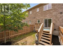 This beautifully finished 3-storey townhome features a timeless brick and stone exterior, 9-foot ceilings, and nearly 2,000 sq ft of thoughtfully designed living space. The eat-in kitchen boasts stunning quartz countertops, large island with breakfast bar, a stylish backsplash, upgraded cabinetry, pantry and a walkout to deck with fully fenced backyard. A spacious dining and living area complete the main floor, all enhanced by luxury vinyl plank flooring and custom zebra blinds, which both continue throughout the top two levels. Upstairs, the primary bedroom offers a walk-in closet and a private ensuite, accompanied by two additional bedrooms and a second full bathroom with quartz counter and upgraded light fixtures. Laundry is also on the third floor adding extra convenience. The fully finished basement adds even more versatility with a fourth bedroom, 2-piece bath, and extra living space ideal for guests, a home office, or recreation. Located steps from a school bus stop, and close to parks, top-rated schools, and major commuter routes, this home blends convenience with comfort. Move-in ready! (id:61594)