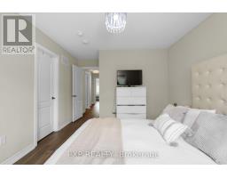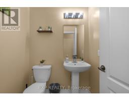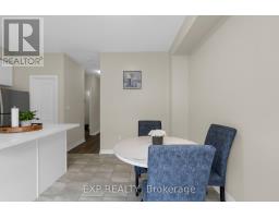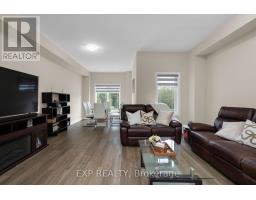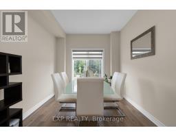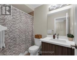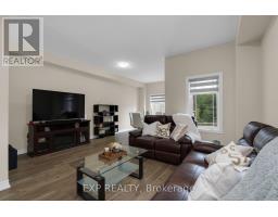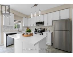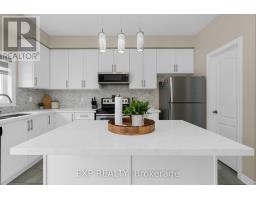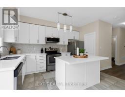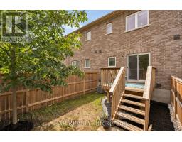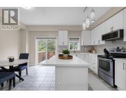 This beautifully finished 3-storey townhome features a timeless brick and stone exterior, 9-foot ceilings, and nearly 2,000 sq ft of thoughtfully designed living space. The eat-in kitchen boasts stunning quartz countertops, large island with breakfast bar, a stylish backsplash, upgraded cabinetry, pantry and a walkout to deck with fully fenced backyard. A spacious dining and living area complete the main floor, all enhanced by luxury vinyl plank flooring and custom zebra blinds, which both continue throughout the top two levels. Upstairs, the primary bedroom offers a walk-in closet and a private ensuite, accompanied by two additional bedrooms and a second full bathroom with quartz counter and upgraded light fixtures. Laundry is also on the third floor adding extra convenience. The fully finished basement adds even more versatility with a fourth bedroom, 2-piece bath, and extra living space ideal for guests, a home office, or recreation. Located steps from a school bus stop, and close to parks, top-rated schools, and major commuter routes, this home blends convenience with comfort. Move-in ready! (id:61594)