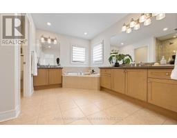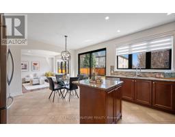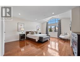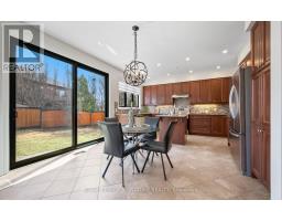 Situated on a premium pie-shaped lot in Upper Thornhill Estates, this beautifully maintained 4-bedroom, 5-bathroom executive residence stands out in one of Vaughan's most desirable communities. A striking stone-accented façade, covered front porch, and Juliette balcony define the exterior, while parks, scenic green space, and walking trails are just moments away. The front foyer opens into a seamless open-concept living and dining area, complemented by hardwood flooring and pot lights throughout, while a private main floor office offers an ideal space to work, focus, or unwind. The layout flows into a sun-filled family room centered around a cozy gas fireplace creating an inviting place to gather and share special moments. The spacious kitchen features a centre island, stainless steel appliances and a bright breakfast area with sliding doors providing direct access to a fully fenced backyard - perfect for hosting and time spent with family and friends. Expansive windows with updated glass and custom blinds fill the home with natural light throughout. Upstairs, four generously sized bedrooms are thoughtfully arranged, including a primary suite with a walk-in closet and 5-piece ensuite, a Jack-and-Jill bath connecting bedrooms two and three and a fourth bedroom with its own private ensuite. A soaring skylight enhances the upper level with an airy feel. The finished basement extends the living space with two massive recreation areas, complete with three egress windows and a 3-piece bath-well suited for a home theatre, gym, play space, or guest setup, offering flexibility to suit your lifestyle. Located near well-regarded schools including Herbert H. Carnegie Public School, as well as parks, community amenities, shopping and transit, this is truly an exceptional home in a highly sought-after location. (id:61594)
