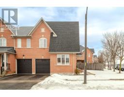 This corner lot property is truly unique, situated in such a way that looks and feels like a detached home. The bright and spacious interior, has a formal living room, open concept kitchen/family room with a gas fireplace that overlooks a large fenced backyard. The second level has 3 bedrooms, with the large primary bedroom featuring double entry doors, a semi ensuite and W/I closet . The newly finished basement includes a modern 3-piece bath and 2 storage rooms. Located in the family-friendly Community of Hamlet in Northeast Ajax. This cozy neighborhood has everything a family would want; an elementary school, parks, a pond; all walking distance and the convenience of having Audley Recreational Centre & Deer Creek Golf Club close by. A tremendous opportunity for the first-time buyer! (id:61594)