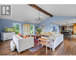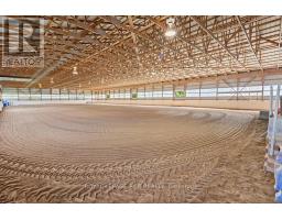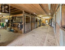 Where Horse, Home, and Heart Align. Set among premier horse farms in elite equestrian country, this exceptional 49-acre estate is designed for those whose days begin in the barn aisle and end planning the next ride. Ten lush paddocks with frost-free hydrants and hydro support seamless, year-round horsekeeping, while the insulated, ventilated 20-stall steel barn features a heated tack room, wash and grooming stalls, feed room, 3-piece bath, & hay storage above with convenient drops - efficient and rider-friendly. The attached 76' x 160' indoor arena with operable windows allows consistent training through every season, perfect for winter miles and polishing flatwork. Outdoors, a large jumping field, 150' x 200' sand ring, and grass dressage field support relaxed hacks to show-ready schooling, while two productive hayfields enhance self-sufficiency. The 1997-built residence offers comfort after long days in boots and breeches, with hand-scraped wide-plank hickory floors, 9' and cathedral ceilings, and abundant natural light. The updated chef's kitchen with Wolf cooktop, leathered granite counters, and generous island opens to the dining area and Great Room with beamed cathedral ceiling. A main-floor bedroom with ensuite adds flexibility; upstairs are three additional bedrooms and updated baths with heated floors and towel warmers. The primary suite includes a dressing room, custom walk-in closet, and spa-inspired ensuite. Walk-out lower level awaits future plans. Upgrades include a 2024 cold-climate heat pump with propane furnace backup, Generac generator supporting essential farm systems, and newer Goodfellow siding. Minutes from Angelstone, Meadowlarke North, and Palgrave-where life with horses feels perfectly in stride. A thoughtful layout keeps routines efficient, from first feed to final night check, with easy flow between barn, arena, & home-ideal for competitors or passionate riders seeking a turnkey property ready to enjoy from day one. Ready to tack up now. (id:61594)
