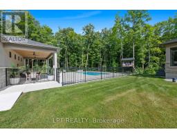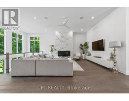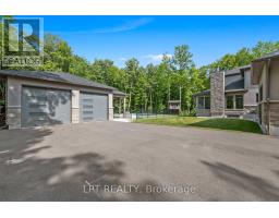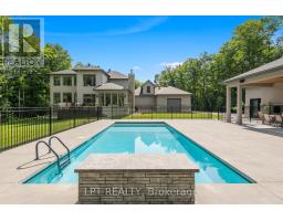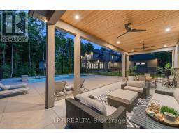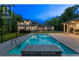 One of the largest lots in Rideau Forest (2.2 acr),this showstopper home is absolutely loaded with high end features and amenities!Boasting over 6400 sqft of finished living space,this 4 bed 4 1/2 bath is spread over three floors of refined luxury.Greeted by an expansive front porch and large double doors leading into an oversized entryway.Fully millworked office with wall to wall windows is the perfect headquarters to use for working from home.Sun filled living room has a tiled gas fireplace and floating cabinetry.The kitchen is a chef's delight with a commercial fridge/freezer, built in wall over and a gas cooktop that continues with two drink fridges and a walk-in pantry just off of the dining room complete with a beautiful wall feature.The breakfast nook overlooks the backyard and leads you into a dream sunroom with a wood fireplace and heated floors.The mudroom has a secondary front entrance with and is connected to laundry room with custom cabinets and a quartz countertops.Second floor primary bedroom has a vaulted ceiling, expansive walk-in closet and is encased in windows, falling onto a backdrop of wooded forest.The oversized elegant primary bathroom has his and her vanities, speakers and a massive walk-in shower.This floor continues on with 3 other bedrooms, two sharing a jack and jill washroom and the other with its own full ensuite.Lower level has a semi walkout allowing the sun's rays to reach the basement effortlessly as well as radiant heat!Theater room with a projector, 7.3 speaker sound system and trey ceilings.The gym is fully walled in glass and has rubber floors and a wall of mirrors with another full bathroom off of the side.Primary garage has rigid foam,epoxy floors, gas heater,oversized doors and back bay. Secondary garage fits 5 cars and has a bonus powder room.Massive overhang off the second garage is the perfect spot to relax by the salt water pool.Bonus hot tub w automated cover and luxury tree house included!Full generac generator! (id:61594)