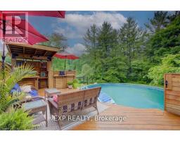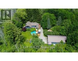Discover unparalleled privacy on this remarkable, stress melting, 8 acre retreat, where nature and lifestyle blend seamlessly in your private escape a place the owners describe as their very own resort. With no neighbors in sight, you'll enjoy the tranquility and seclusion of this amazing oasis creating a feeling of being worlds away yet close enough for everyday convenience. This property offers an exceptional living experience, surrounded by walking trails perfect for year round adventures, close to snowmobile trails and many off road adventure opportunities. The options for this property are only limited by your imagination, from potential hobby farm, ATV trails, housing an existing business, start your own or just enjoy the beauty of nature. The centerpiece of this property is the stunning four-bedroom, three bathroom (2+1) one of a kind custom side split home. A striking spiral staircase takes center stage, adding architectural charm. The natural light floods every corner, creating a warm and inviting ambiance. While the top floor balcony invites you to savor your morning coffee amidst trees and picturesque views. The expansive primary suite offers abundant storage and space with endless potential to create your own spa like ensuite. Entertain effortlessly in the spacious living areas or take the gathering outdoors to the above ground heated pool deck and bar. Car enthusiasts and hobbyists will marvel at the shop with a double car garage in addition to the 400 sqft workshop and similar size stable area that can be used as additional storage or to keep animals. This is more than a home, its a private sanctuary where you can immerse yourself in nature and create unforgettable memories. Whether you're exploring the trails, hosting friends and family, or simply unwinding in your own oasis, 5794 Tenth Line is truly unlike any other. (id:61594)