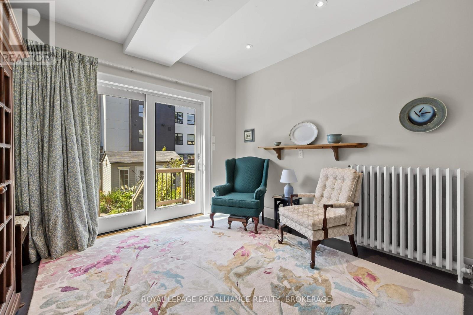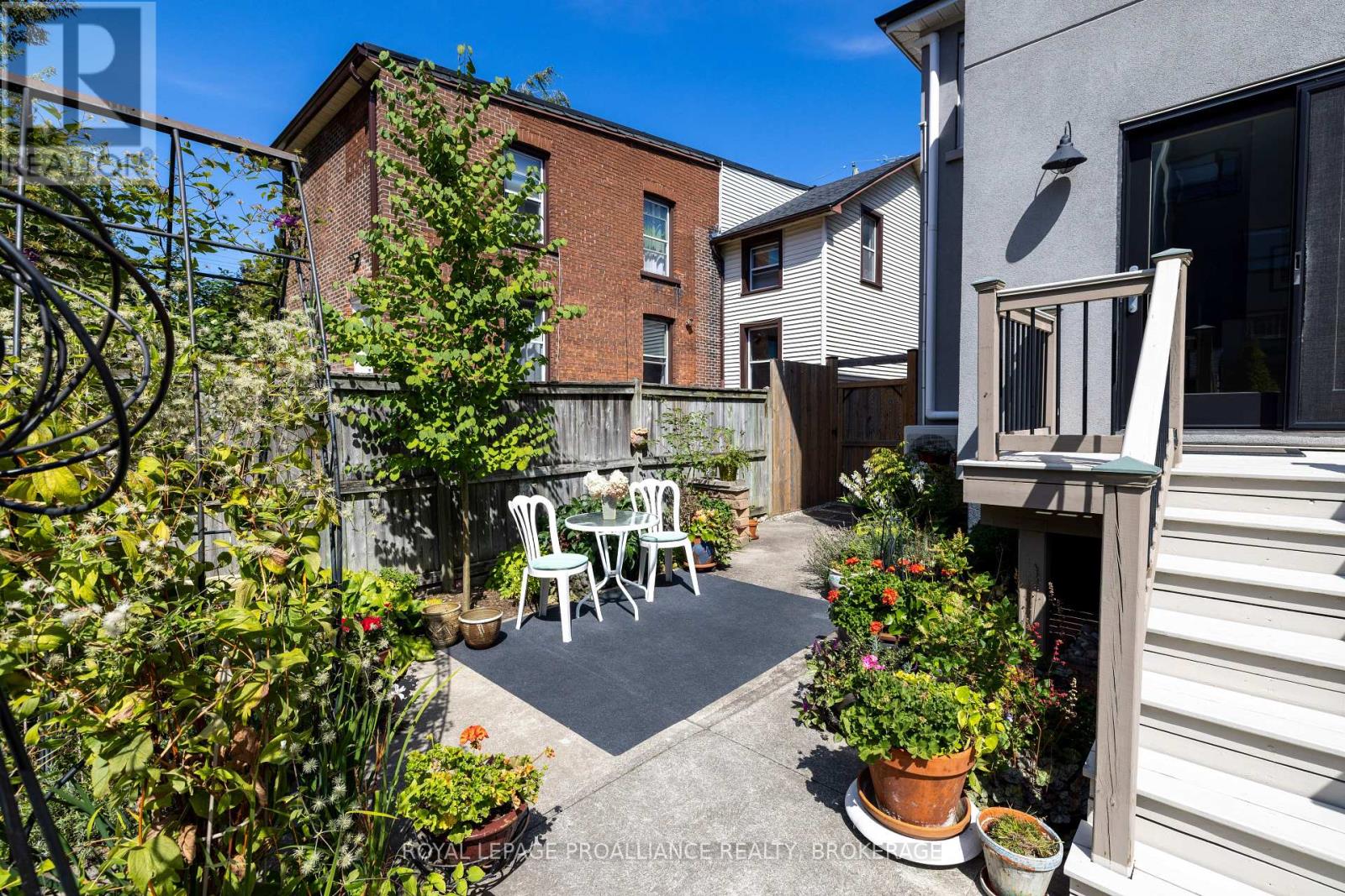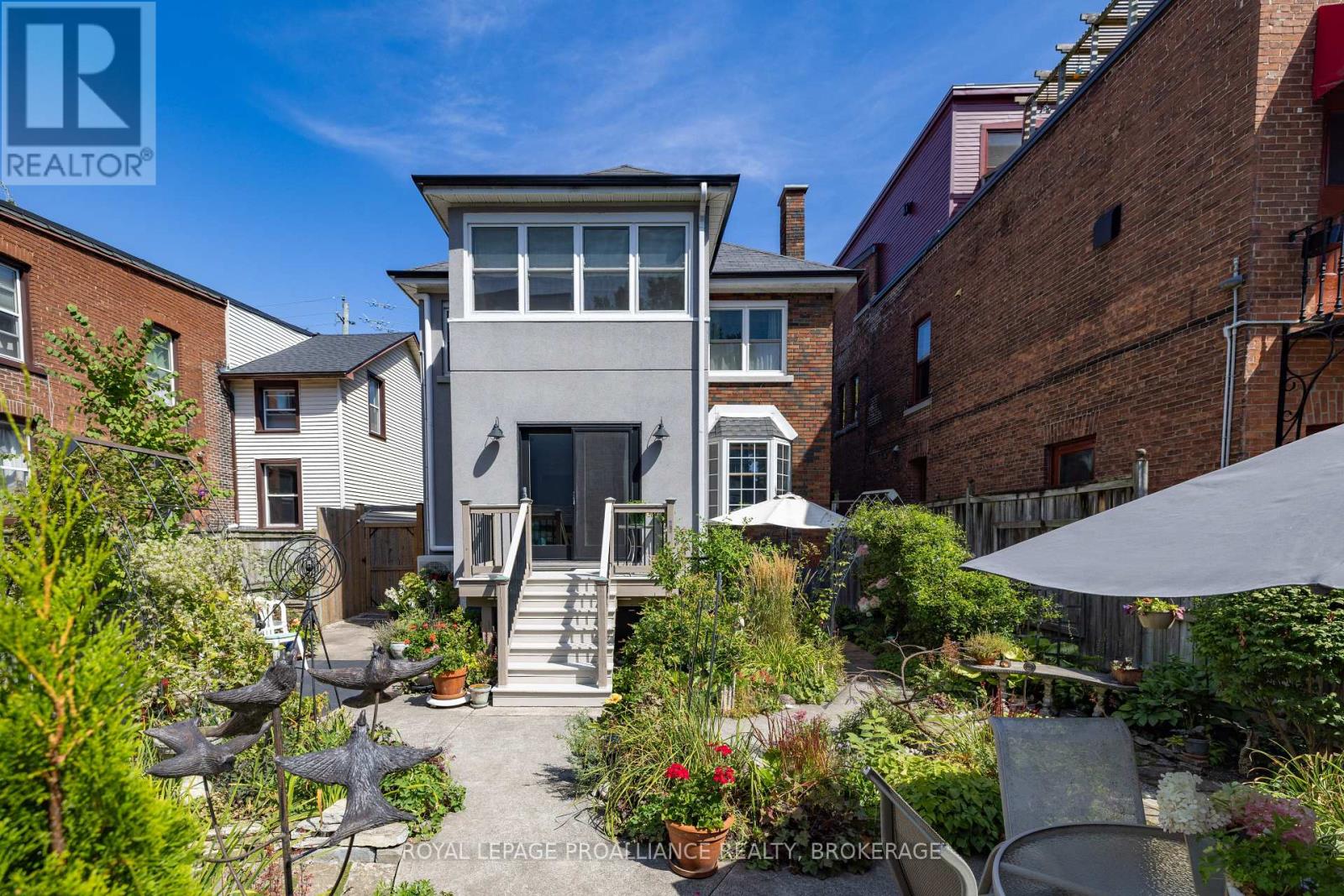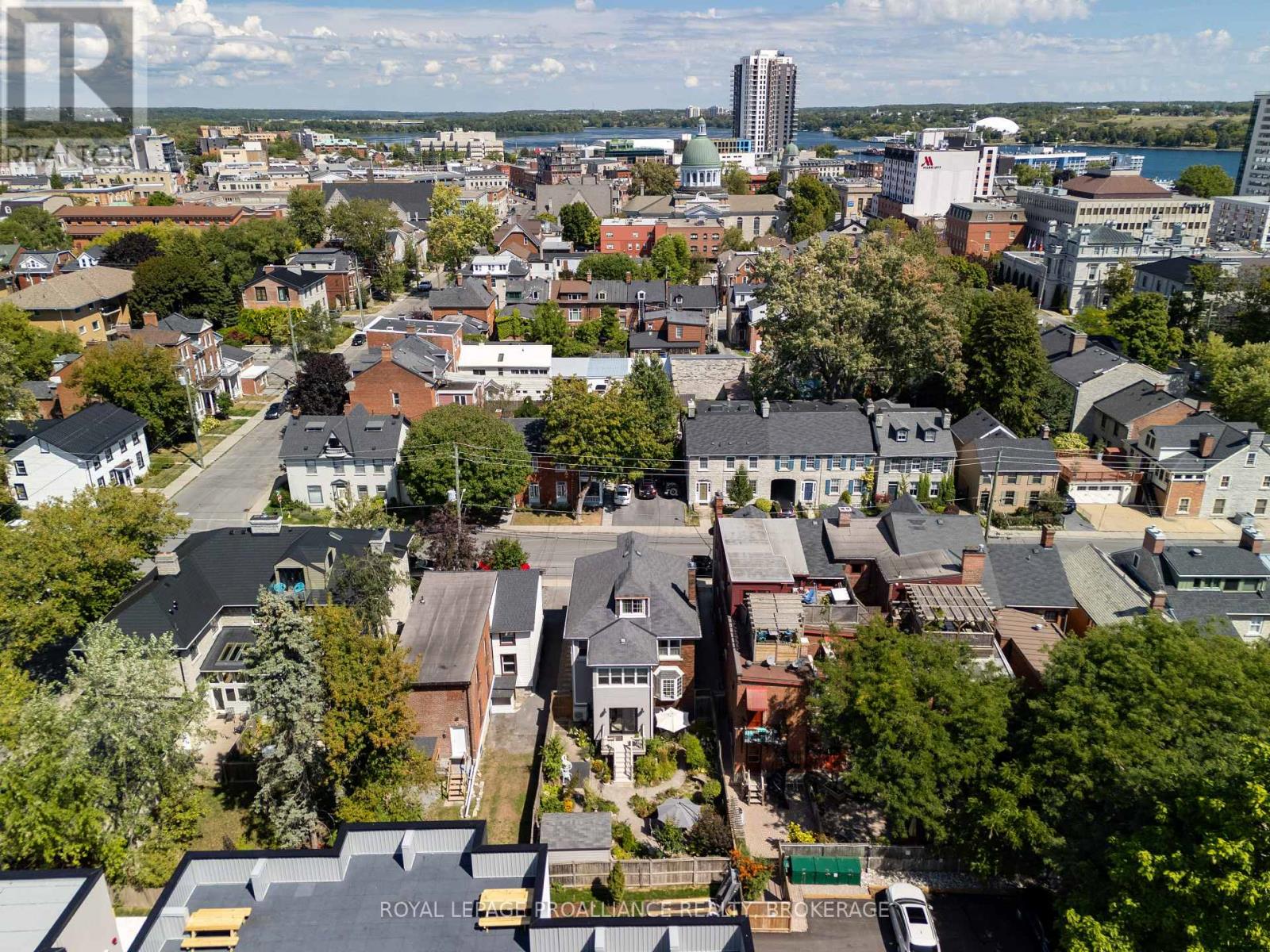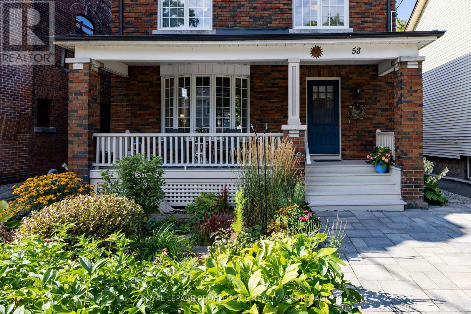 Kingston's downtown Sydenham Ward is lined with lovely townhomes. Detached residences, though, especially sizeable and extensively renovated examples, are in short supply, particularly along the quiet, close-to-the-water bottom end of Earl St. If you're in the market for such a thing, it can feel as if you're waiting for a comet that blazes past only once in a generation. Even with that introduction, 58 Earl St is something special. Walkable in minutes to the downtown core and to the water, the hospitals, City Park and the University, the location feels as perfect as a front-row seat. With large principal rooms and high ceilings, excellent natural light and grown-up perennial gardens front and back, it's a winning ticket, a dream made from perfect angles in double-brick and immaculate plaster. The main floor, with its formal living and dining rooms, is pleasingly open thanks to a 2012 Mac Gervan renovation (the kitchen has in-floor heating!), and the home office addition gives onto an elevated deck and then those formal and wild gardens. The primary bedroom suite at the rear of the second floor is as grand as any in the city, with sitting areas and a six-piece ensuite so generous you'll want to plan in advance your route back to bed. Two more bedrooms are spread across the front of this level and both have spacious closets. The third floor - completely finished with hardwood floors and ample knee-wall storage - would make for a splendid fourth bedroom if it wasnt so well-suited to a studio, or teenagers hideaway. The auxiliary heat pump (2020) is connected to three heads over two floors and keeps things both warm and cool, but the main heat source is the gas boiler and the splendid, stylish radiators. The parking pad was resurfaced in 2022, plenty of the windows and doors have been replaced as well, and the basement is dry and insulated. The house needs not a darned thing, that's what I'm getting at, and offers everything you've been looking for. (id:61594)