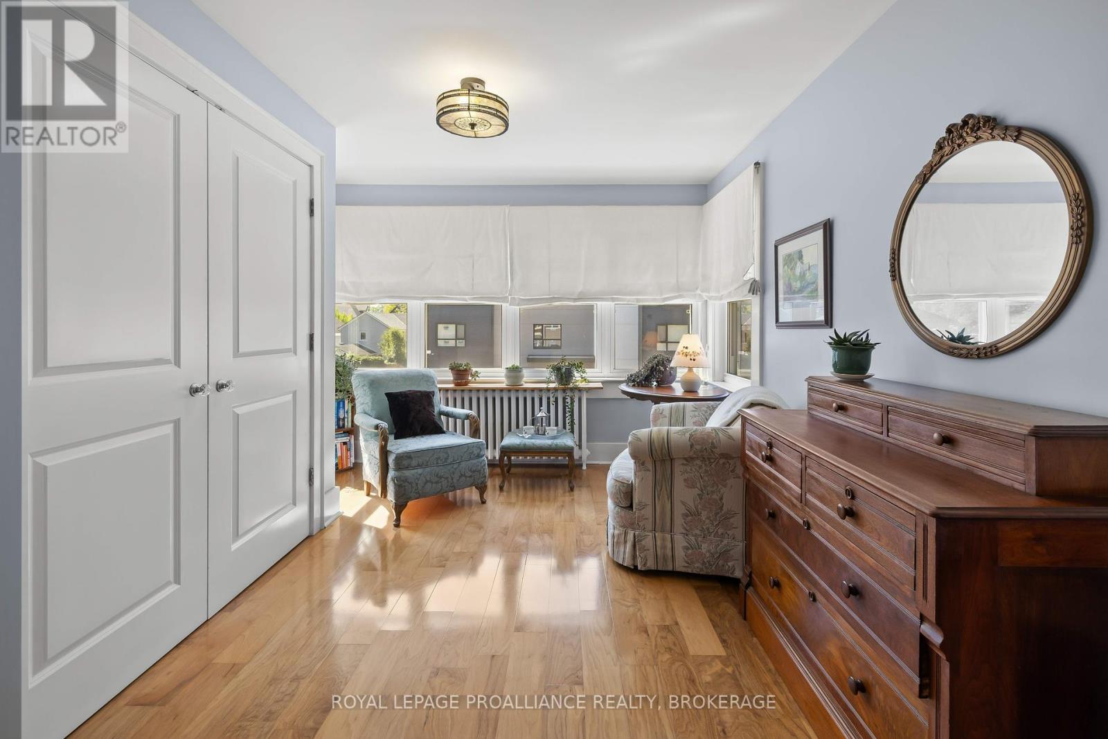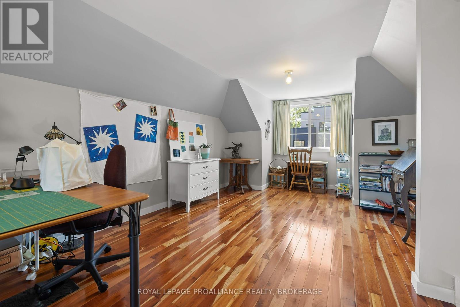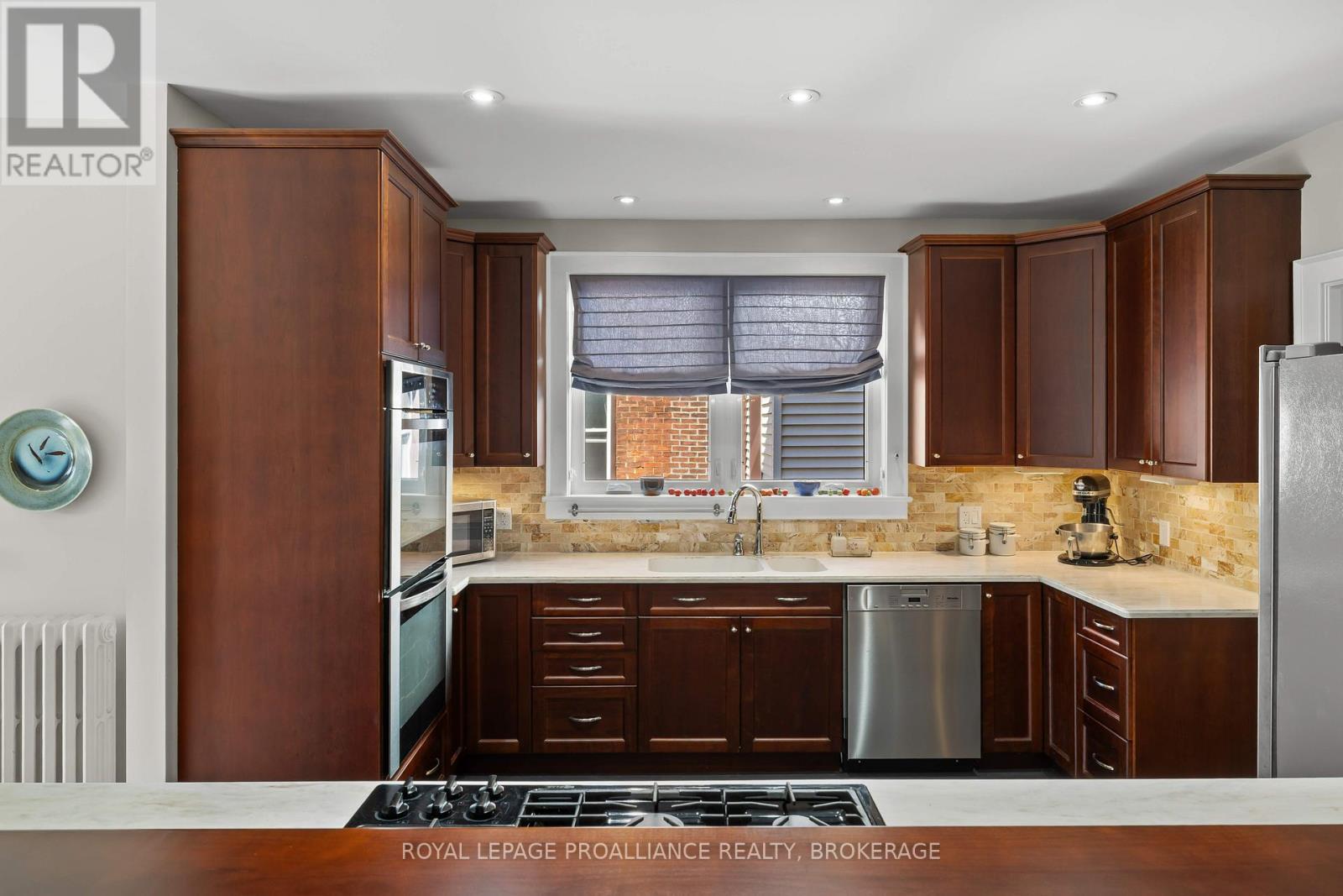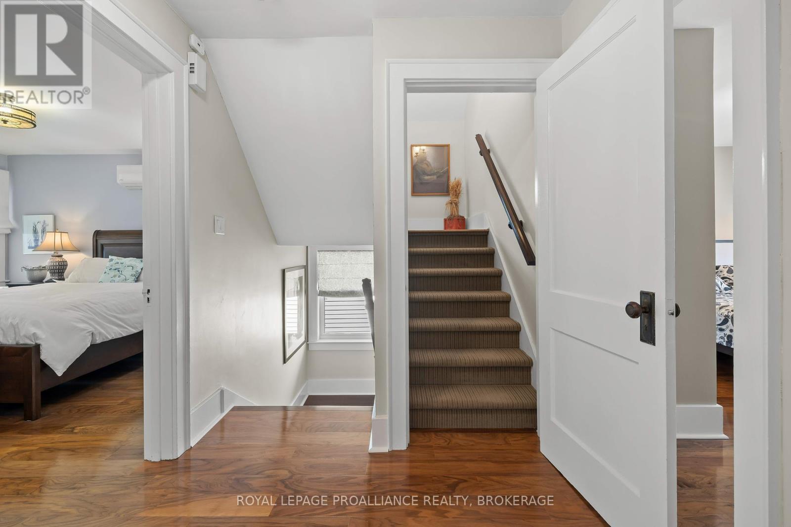 Kingston's downtown Sydenham Ward is lined with lovely townhomes. Detached residences, though, especially sizeable and extensively renovated examples, are in short supply, particularly along the quiet, close-to-the-water bottom end of Earl St. If you're in the market for such a thing, it can feel as if you're waiting for a comet that blazes past only once in a generation. Even with that introduction, 58 Earl St is something special. Walkable in minutes to the downtown core and to the water, the hospitals, City Park and the University, the location feels as perfect as a front-row seat. With large principal rooms and high ceilings, excellent natural light and grown-up perennial gardens front and back, it's a winning ticket, a dream made from perfect angles in double-brick and immaculate plaster. The main floor, with its formal living and dining rooms, is pleasingly open thanks to a 2012 Mac Gervan renovation (the kitchen has in-floor heating!), and the home office addition gives onto an elevated deck and then those formal and wild gardens. The primary bedroom suite at the rear of the second floor is as grand as any in the city, with sitting areas and a six-piece ensuite so generous you'll want to plan in advance your route back to bed. Two more bedrooms are spread across the front of this level and both have spacious closets. The third floor - completely finished with hardwood floors and ample knee-wall storage - would make for a splendid fourth bedroom if it wasnt so well-suited to a studio, or teenagers hideaway. The auxiliary heat pump (2020) is connected to three heads over two floors and keeps things both warm and cool, but the main heat source is the gas boiler and the splendid, stylish radiators. The parking pad was resurfaced in 2022, plenty of the windows and doors have been replaced as well, and the basement is dry and insulated. The house needs not a darned thing, that's what I'm getting at, and offers everything you've been looking for. (id:61594)