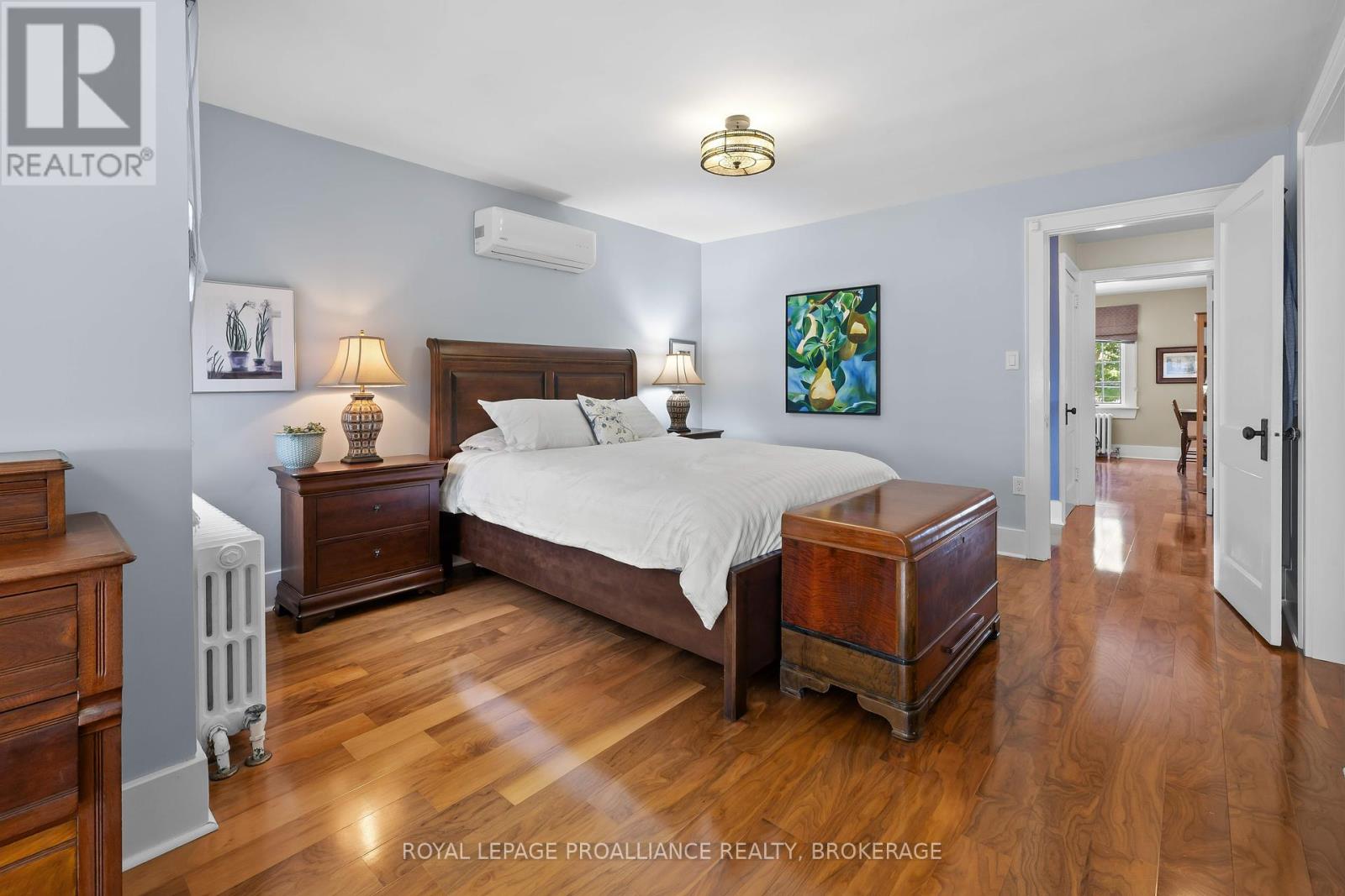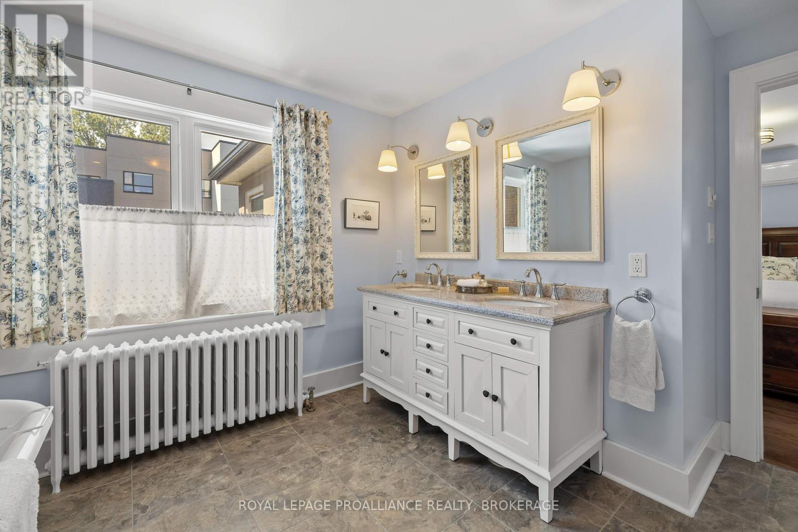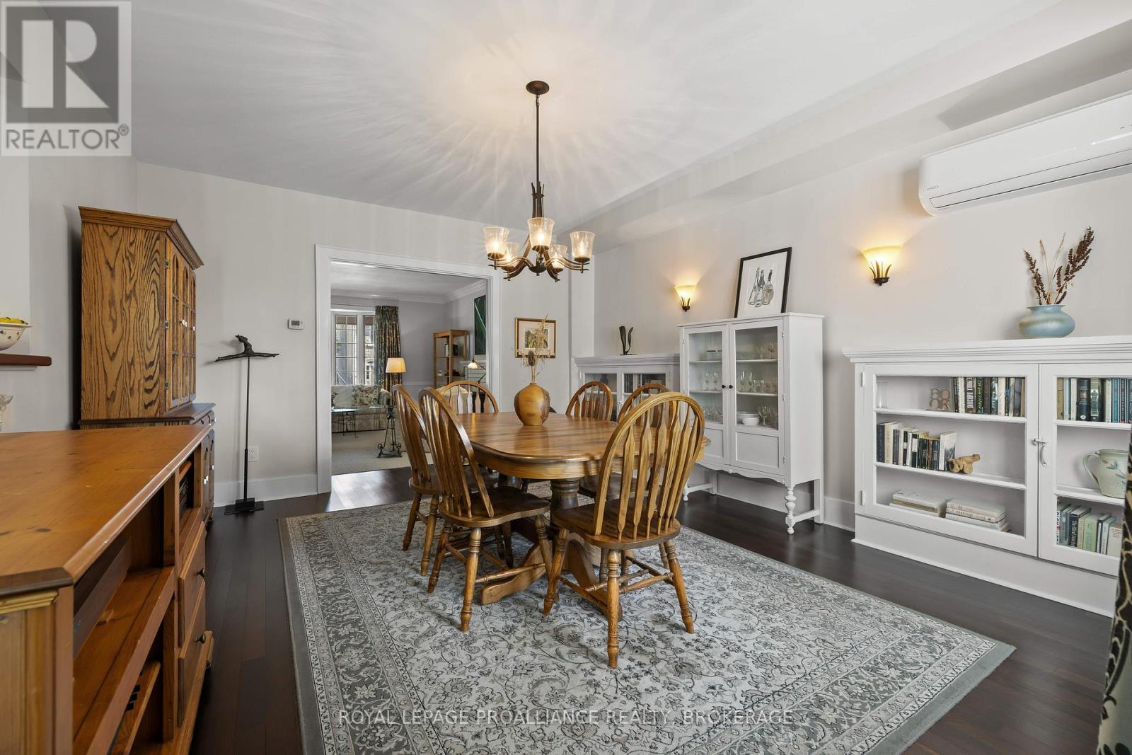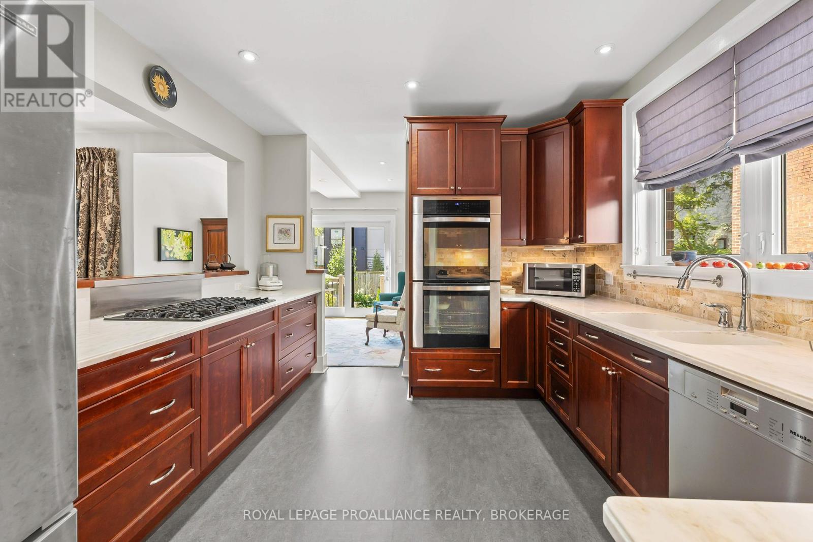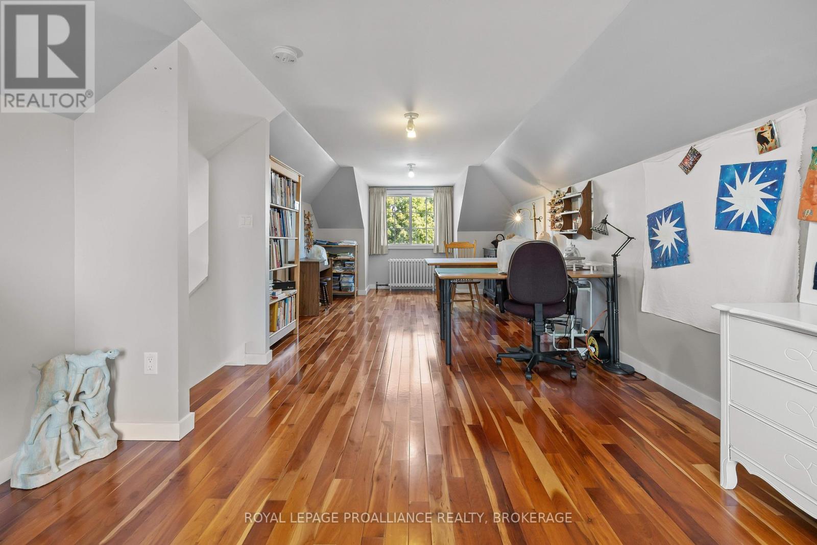 Kingston's downtown Sydenham Ward is lined with lovely townhomes. Detached residences, though, especially sizeable and extensively renovated examples, are in short supply, particularly along the quiet, close-to-the-water bottom end of Earl St. If you're in the market for such a thing, it can feel as if you're waiting for a comet that blazes past only once in a generation. Even with that introduction, 58 Earl St is something special. Walkable in minutes to the downtown core and to the water, the hospitals, City Park and the University, the location feels as perfect as a front-row seat. With large principal rooms and high ceilings, excellent natural light and grown-up perennial gardens front and back, it's a winning ticket, a dream made from perfect angles in double-brick and immaculate plaster. The main floor, with its formal living and dining rooms, is pleasingly open thanks to a 2012 Mac Gervan renovation (the kitchen has in-floor heating!), and the home office addition gives onto an elevated deck and then those formal and wild gardens. The primary bedroom suite at the rear of the second floor is as grand as any in the city, with sitting areas and a six-piece ensuite so generous you'll want to plan in advance your route back to bed. Two more bedrooms are spread across the front of this level and both have spacious closets. The third floor - completely finished with hardwood floors and ample knee-wall storage - would make for a splendid fourth bedroom if it wasnt so well-suited to a studio, or teenagers hideaway. The auxiliary heat pump (2020) is connected to three heads over two floors and keeps things both warm and cool, but the main heat source is the gas boiler and the splendid, stylish radiators. The parking pad was resurfaced in 2022, plenty of the windows and doors have been replaced as well, and the basement is dry and insulated. The house needs not a darned thing, that's what I'm getting at, and offers everything you've been looking for. (id:61594)