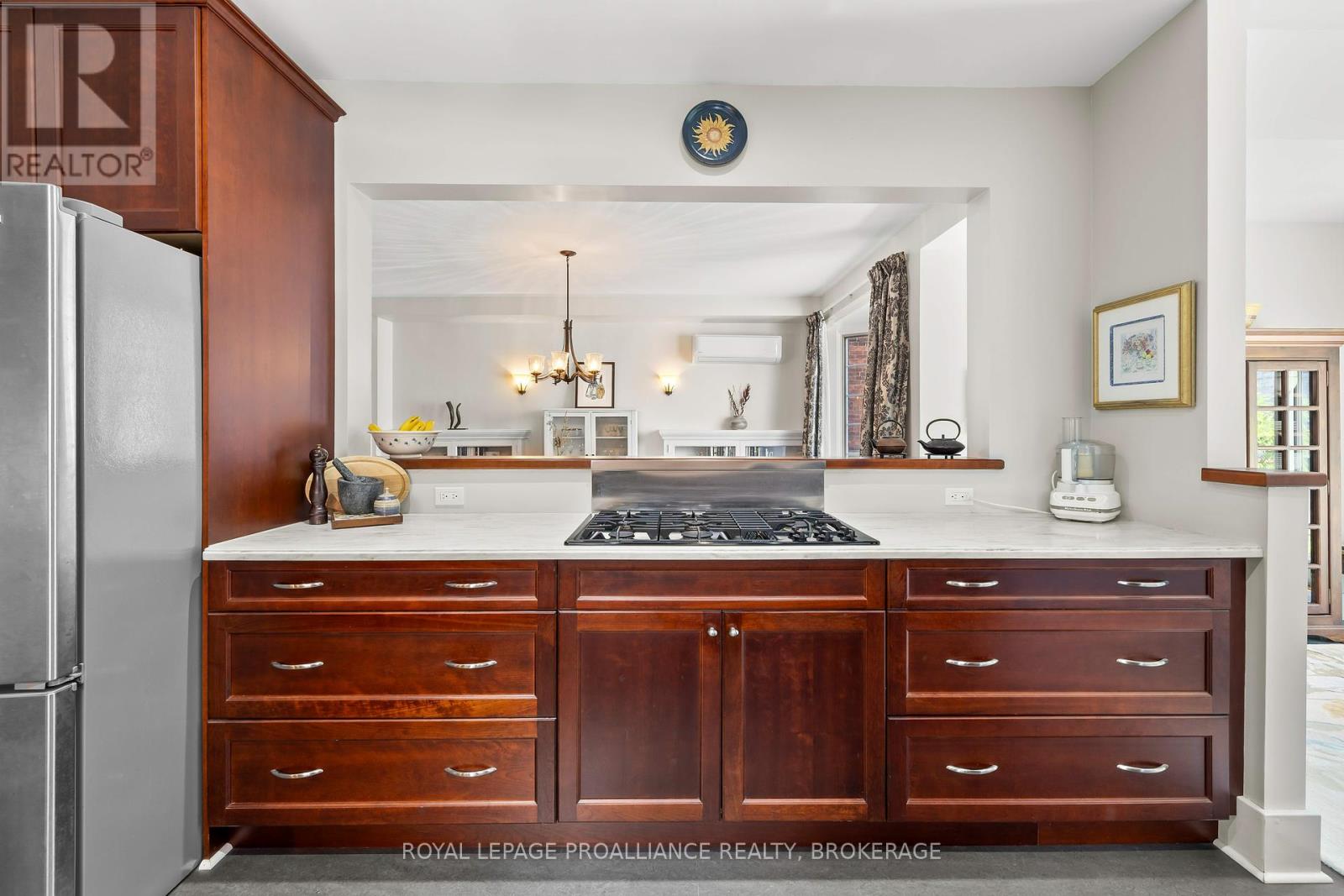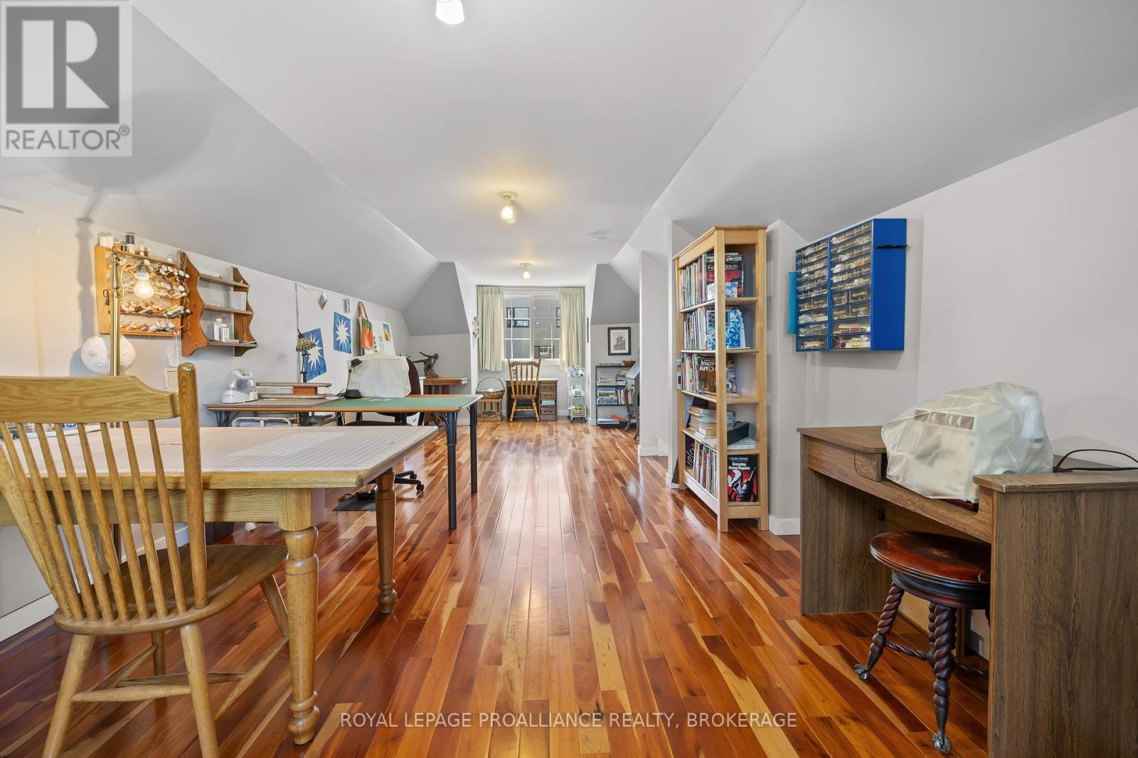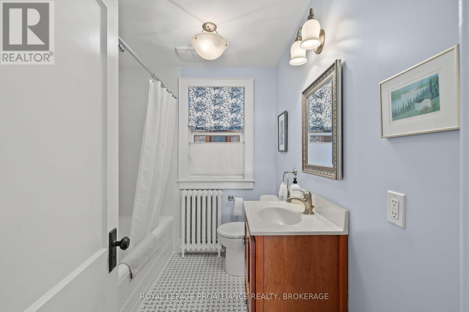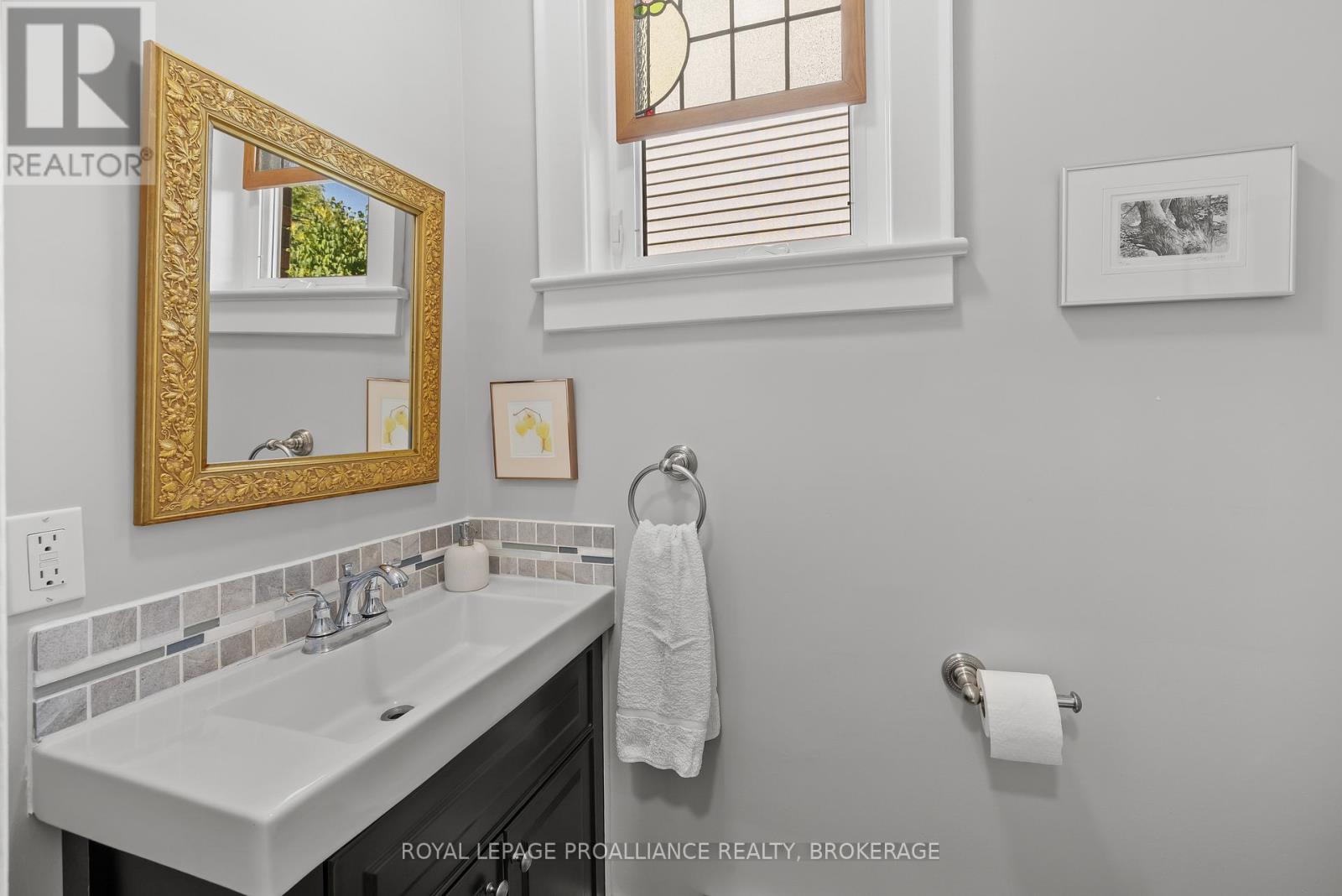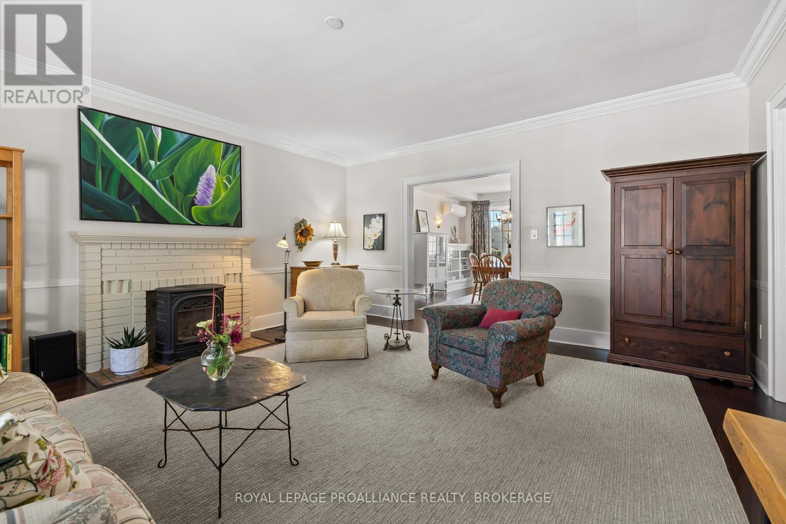 Kingston's downtown Sydenham Ward is lined with lovely townhomes. Detached residences, though, especially sizeable and extensively renovated examples, are in short supply, particularly along the quiet, close-to-the-water bottom end of Earl St. If you're in the market for such a thing, it can feel as if you're waiting for a comet that blazes past only once in a generation. Even with that introduction, 58 Earl St is something special. Walkable in minutes to the downtown core and to the water, the hospitals, City Park and the University, the location feels as perfect as a front-row seat. With large principal rooms and high ceilings, excellent natural light and grown-up perennial gardens front and back, it's a winning ticket, a dream made from perfect angles in double-brick and immaculate plaster. The main floor, with its formal living and dining rooms, is pleasingly open thanks to a 2012 Mac Gervan renovation (the kitchen has in-floor heating!), and the home office addition gives onto an elevated deck and then those formal and wild gardens. The primary bedroom suite at the rear of the second floor is as grand as any in the city, with sitting areas and a six-piece ensuite so generous you'll want to plan in advance your route back to bed. Two more bedrooms are spread across the front of this level and both have spacious closets. The third floor - completely finished with hardwood floors and ample knee-wall storage - would make for a splendid fourth bedroom if it wasnt so well-suited to a studio, or teenagers hideaway. The auxiliary heat pump (2020) is connected to three heads over two floors and keeps things both warm and cool, but the main heat source is the gas boiler and the splendid, stylish radiators. The parking pad was resurfaced in 2022, plenty of the windows and doors have been replaced as well, and the basement is dry and insulated. The house needs not a darned thing, that's what I'm getting at, and offers everything you've been looking for. (id:61594)