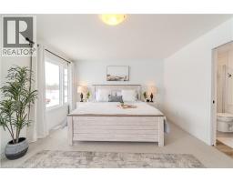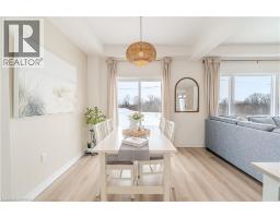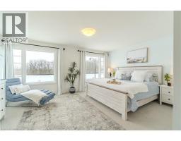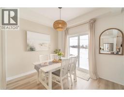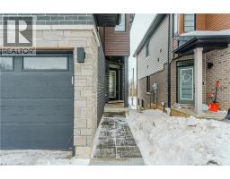 This exceptional freehold (no condo fees) end-unit townhome, built in 2025 by Losani Homes, features the Ambrosia Model with over 1,700 sq ft of refined living space. Encircled by nature and bordered by the Nith River, it offers an unmatched lifestyle. Trails at your doorstep invite canoeing, kayaking, hiking, fishing, and dog walks. Stroll through family-friendly Lions Park along the river past festivals, live music, the outdoor pool, splash pad, ball diamonds, then cross the rustic bridge into the charming downtown core to browse Wincey Mills Marketplace for fresh ingredients, coffee, fresh flowers, stop at Paris Beer Co., and wander home along the river. Striking curb appeal with dramatic dark trim, oversized windows, wood accents, modern glass door, and a large driveway to the double insulated garage. Detached homes planned behind and across the street enhance privacy and long-term value. Inside, the open-concept main floor with generous layout is perfect for entertaining, featuring shaker-style white cabinetry, quartz countertops with a statement island, designer backsplash, under-cabinet lighting, pot lights, soft-close cabinetry, fully tiled shower surrounds with niche and frameless glass, and huge windows that flood the space with light. Upstairs, the massive master suite features large windows with stunning views of the Nith River Valley, a spacious walk-in closet, and a luxurious ensuite. Two additional bedrooms, laundry, and open space complete the upper level. Additional highlights include keyless entry, extreme lookout basement window, upgraded garage insulation, high-end LG appliances, r/o water system, humidifier, central air, garage door opener, and custom window coverings. Sod and a future deck are yet to be completed, allowing personalized outdoor space, while a proposed park just down the street adds appeal. Expertly built with superior soundproofing, this home offers a level of privacy rarely found in townhome living. (id:61594)