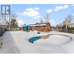 Welcome to this beautifully maintained 3-bedroom, 2-bathroom family home, ideally located in a quiet Petawawa neighbourhood just minutes from Garrison Petawawa and all the amenities along the Boulevard. The bright and inviting main floor features a large kitchen with stainless steel appliances, abundant counter space, and a seamless flow into the sunlit dining room. A stunning double-sided wood-burning fireplace connects the dining area and the spacious sunken living room, creating a perfect atmosphere for both entertaining and relaxing. Three comfortable bedrooms and a full 4-piece bathroom complete the main level. Before heading downstairs, you'll pass a convenient laundry area and a 2-piece bathroom just off of the garage entrance. The lower level offers a large recreation room, an additional office or flex space, and an expansive storage area. Outside, enjoy your own private retreat with a gazebo-covered deck featuring a hot tub, a beautifully maintained inground pool, a fully fenced backyard, and a handy storage shed. The attached two-car garage includes an extra storage room-ideal for keeping everything organized year-round. This property combines comfort, style, and functionality in one of Petawawa's most sought-after locations. Many recent updates in 2022 include new auto garage door openers, professional house painting and popcorn removal, some new flooring, new roof and chimney rebuilt, washer, dishwasher, and in 2023 the gutters were redone. Seller's are flexible on closing. 24 hour irrevocable on all offers. (id:61594)