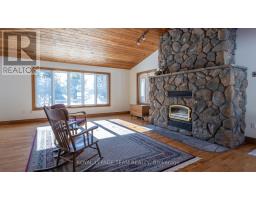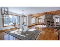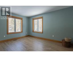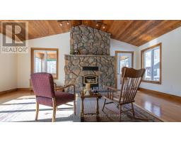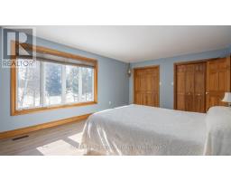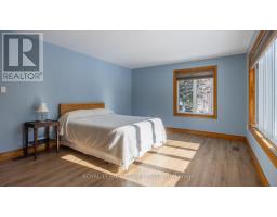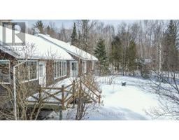 Looking for both waterfront and privacy, it doesn't get any better than this. 400 Feet of sandy shoreline on 5 plus private acres. Lake Hardwood is a very quiet spring fed pristine lake. Experience dragonflies hatching, call of the loons, great blue herons, and watch the sunsets from your dock. In the fall the Lyndoch hills are on fire with brilliant fall colours. The 1600 square foot bungalow is built on a level lot and features open concept design with lots of windows to let the sunlight shine throughout. The living room features a floor to ceiling cultured stone fireplace with wood insert, along with a cathedral ceiling finished in cedar with gleaming hardwood floors. In the evenings you can retire to the 3 season spacious sunroom and enjoy the views. The main floor has two large bedrooms and a 3 pc bath with a whirlpool tub to relax at the end of the day. A fully functioning Findlay cookstove adds a special touch to the main floor area. The lower level is finished with a large recreation room and a 3 piece bath with shower. The lower level features a walkout to the lakeside. The laundry room is quite large and can easily be converted into a bedroom, moving the laundry room to the utility room. Don't worry about any power outages, the property is equipped with a Kohler whole house generator. There is a large 32 x 23 foot garage/workshop fully insulated, wired and has woodstove heat. There is also a large wood shed and a drive shed for storage. Rogers has just erected a new cell tower close by. (id:61594)