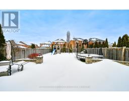 Welcome to this beautifully updated 4-bed, 4-bath detached home in the highly sought-after Williamsburg community of Whitby. Offering approx 3,313 sq ft of elegant living space on a premium oversized lot, this two-storey home with a double car garage combines timeless design with modern finishes throughout. A large front porch adds exceptional curb appeal. Freshly painted from top to bottom, the home showcases new mocha-coloured engineered hardwood flooring throughout, new baseboards, window and door trim, and stylish new light fixtures. The updated kitchen is the heart of the home, featuring new quartz countertops and backsplash, S/S appliances, pot lights, a centre island and a spacious open-concept eat-in area. Walk-out to a large backyard oasis with interlocking stone patio, exterior lighting, and beautifully maintained gardens. The main floor offers exceptional functionality with an office, formal living and dining rooms, a cozy family room with a gas fireplace, and convenient main floor laundry with direct garage access. Two staircases lead to the second level, where you'll find an additional family room overlooking the front of the home, with large south facing windows creating a 'sun room' full of natural light, and a second gas fireplace. Upstairs, the spacious primary suite features a walk-in closet and a luxurious 5-piece ensuite with quartz countertops. Two additional bedrooms share a semi-ensuite bath, while the fourth bedroom includes its own 4-piece ensuite and walk-in closet, providing comfort and privacy for family or guests. Additionally, the upstairs bathrooms have new quartz countertops for added design and elegance. The unfinished basement spans almost the full footprint of the home, offering a large open space with outstanding potential, along with a convenient cold cellar for additional storage. An impressive layout, thoughtful upgrades, and a premium lot in one of Whitby's most desirable neighbourhoods - this is a home you don't want to miss (id:61594)