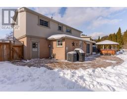 Beautifully renovated home in must sought after executive "Ridgehill Manor". Tucked away in a child-safe court, set on an extra large pie-shaped lot and perfectly positioned with 34 acres of conservation/park ravine across the road with Fletcher's Creek winding through it, it's truly an exceptional setting for nature lovers. Featuring complete renovations inside and out with stucco and stone veneer exterior, windows, doors, flooring, kitchen and lower level renos. Gorgeous, modern kitchen with ample white cabinetry, two pantries, granite counters, undermount sinks, pot lighting, stainless steel appliances and upgraded convenient sliding door w/o to a large pattern concrete patio with solar gazebo/hot tub. Open concept living/dining room, area showcases colonial columns and millwork, hand-scraped hardwood flooring, pot lighting and a huge sun-filled picture window. Upgraded oak staircase with white pickets. Four generous size bedrooms/upgraded engineered flooring, colonial doors/millwork. Custom, espresso tone built-in closet system in primary offers exceptional storage. Professionally finished lower level family room features a built-in wet bar, pot lighting and upgraded laminate flooring. Three upgraded baths featuring espresso or mocha tone vanities, corian counters, porcelain tiles, soaker tub, large separate shower/tempered glass, undermount sinks. Double width driveway/concrete curbs(4 Car parking), 1.5 Car garage/upgraded concrete floor, electric opener, interior garage access, cedar gazebo/hot tub (as is), central A/C, high efficiency gas furnace, electric breaker panel and more. Neutral palette throughout. Home is ready move in , shows 10+++. (id:61594)
