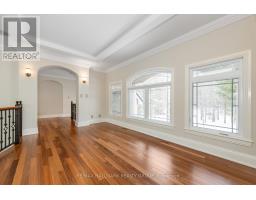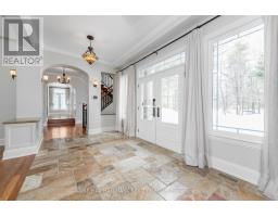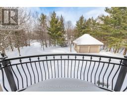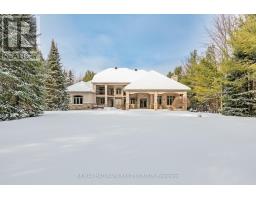 Set on a beautifully treed 2.12 acre estate lot in prestigious Rideau Forest, this elegant Nowaki-built residence offers exceptional privacy, timeless design, and impressive curb appeal. A grand foyer welcomes you inside, where soaring two-storey windows flood the formal living room with natural light and highlight a cozy gas fireplace, creating an immediate sense of scale and warmth. The thoughtfully designed main level blends everyday comfort with upscale finishes. A private primary suite is positioned on one side of the home, featuring a generous walk-in closet and a luxurious 5pc ensuite with double sinks, a soaker tub, and an open walk-in shower with rain head. At the heart of the home, the chef's kitchen showcases rich cabinetry, stone countertops, high-end built-in appliances, and a large centre island, seamlessly connecting to the family room with wood-burning fireplace and tranquil views of the backyard retreat. Upstairs, the secondary bedrooms offer exceptional comfort and versatility. Two feature expansive balconies overlooking the private backyard, while another enjoys its own front-facing balcony. Two bedrooms include walk-in closets, and one benefits from a private 4-piece ensuite, providing ideal accommodations for family or guests. The fully finished lower level is designed for entertaining, complete with a bar, home theatre area, billiards room, sauna, 2pc bath, and direct access to the garage. Outside, enjoy resort-style living with a luxurious in-ground saltwater pool surrounded by mature trees for ultimate privacy. In addition to the attached garage, a separate detached garage provides extra parking, storage, or workshop potential, with an expansive driveway accommodating numerous vehicles. Located in one of the region's most sought-after estate communities, this remarkable property offers a rare combination of space, privacy, and refined living just minutes from city amenities. (id:61594)
