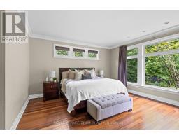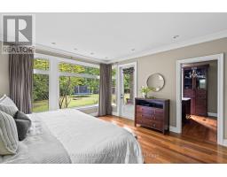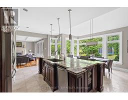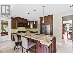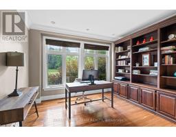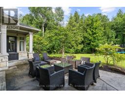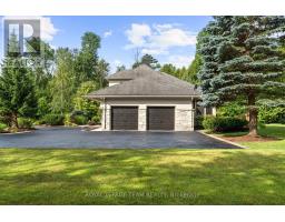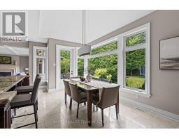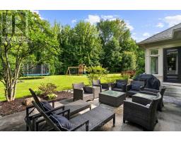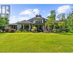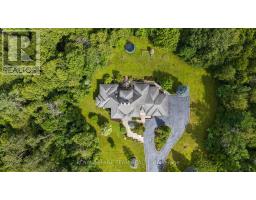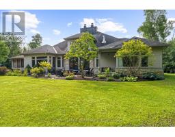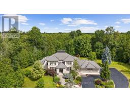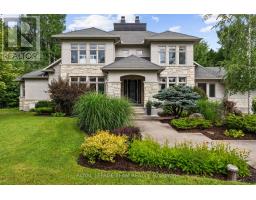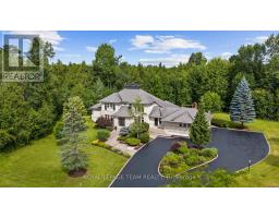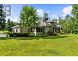 Nestled in the South Point community of Manotick, this beautifully designed family home is set on an approximately 1.3-acre lot, offering both privacy and convenient access to boutique shops, restaurants, and cafés in the charming village of Manotick. The spacious layout boasts hardwood floors on the main and second levels, elegant mouldings, a living room enhanced by a coffered ceiling and natural gas fireplace, and a formal dining room well suited to family gatherings. The kitchen opens to the breakfast room and is appointed with custom cabinetry, granite countertops, a centre island, and a Butlers pantry. A wall of windows fills the space with natural light, creating a bright and welcoming atmosphere. A main-level office offers a quiet, dedicated space for working from home. The primary bedroom is privately located on the main floor and includes a walk-in closet and a well-appointed five-piece ensuite. Upstairs, three additional bedrooms and two full bathrooms, including one ensuite, provide comfortable accommodations for family and guests. The lower level expands the living space with a large recreation room, a full bathroom, a bedroom, and a flexible room in the finished design. Completing the property is a serene outdoor living space that includes a screened-in porch, ideal for quiet moments overlooking mature trees and a peaceful backyard. The exterior patio offers a comfortable setting for alfresco dining or gathering with friends, surrounded by landscaped gardens and natural greenery. (id:61594)