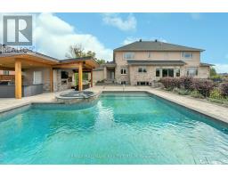 Welcome to this extraordinary estate in the prestigious Rideau Forest community of Manotick. Set on a beautifully landscaped lot, this custom-built residence offers over 7,000 sq. ft. of impeccably designed living space, tailored for both family comfort and grand-scale entertaining. Step inside to a light-filled main floor where elegance meets functionality. The luxurious primary suite is conveniently located on the main level, complete with a spa-inspired ensuite with heated floors and spacious walk-in closet. Each of the four additional bedrooms upstairs feature their own private ensuite and walk-in closet, offering unparalleled privacy and comfort. The heart of the home is the show-stopping chefs kitchen, boasting dual islands, a massive walk-in pantry, and premium appliances, perfect for both casual family meals and gourmet entertaining. A dedicated main floor office provides a quiet retreat for work or study. Unique to this home are two separate garages , two car on each side each leading into well-appointed mudrooms, offering ample storage and family-friendly convenience. Upstairs, a versatile loft area and a large laundry room add to the home's thoughtful layout. The finished lower level is an entertainers dream, featuring a kitchen and bar area, private movie theater that seats 7 in world class recliners, a fitness studio, lounge space, and a luxurious bathroom with a steam shower. Step outside to your private oasis, a resort-style pool with waterfall Hot Tub, complete with a fully equipped pool house and an outdoor kitchen, and lounge area with TV and surround sound, gas fireplace, bar and remote controlled screens, perfect for summer gatherings. Every detail of this home reflects quality, style, and timeless sophistication. An exceptional opportunity to own one of Manoticks finest estates. (id:61594)